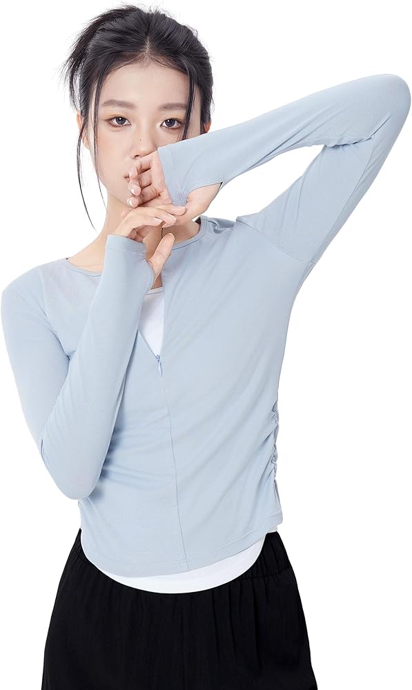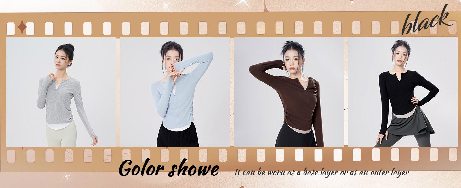 يمكن أن تكون القمصان الأنيقة ذات الأكمام الطويلة ذات المقاس النحيف متعددة الوظائف: تستخدم في الباليه والجاز والرياضة والرقص واليوغا والجري والركض والرياضات الداخلية والخارجية وممارسة الرياضة واللياقة البدنية