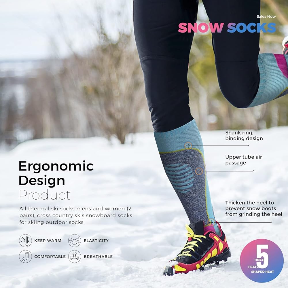 جوارب AII الحرارية للتزلج للرجال والنساء (زوجين)، جوارب التزلج على الجليد عبر البلاد للتزلج في الهواء الطلق