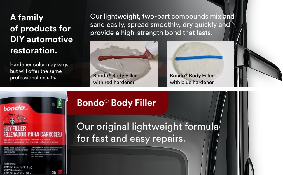 3M Bondo Professional Fast Dry Filler is a game-changing formula designed to help Auto DIYers to get the job done faster and easier. The fastest drying Bondo® product can be sanded in just 15 minutes.