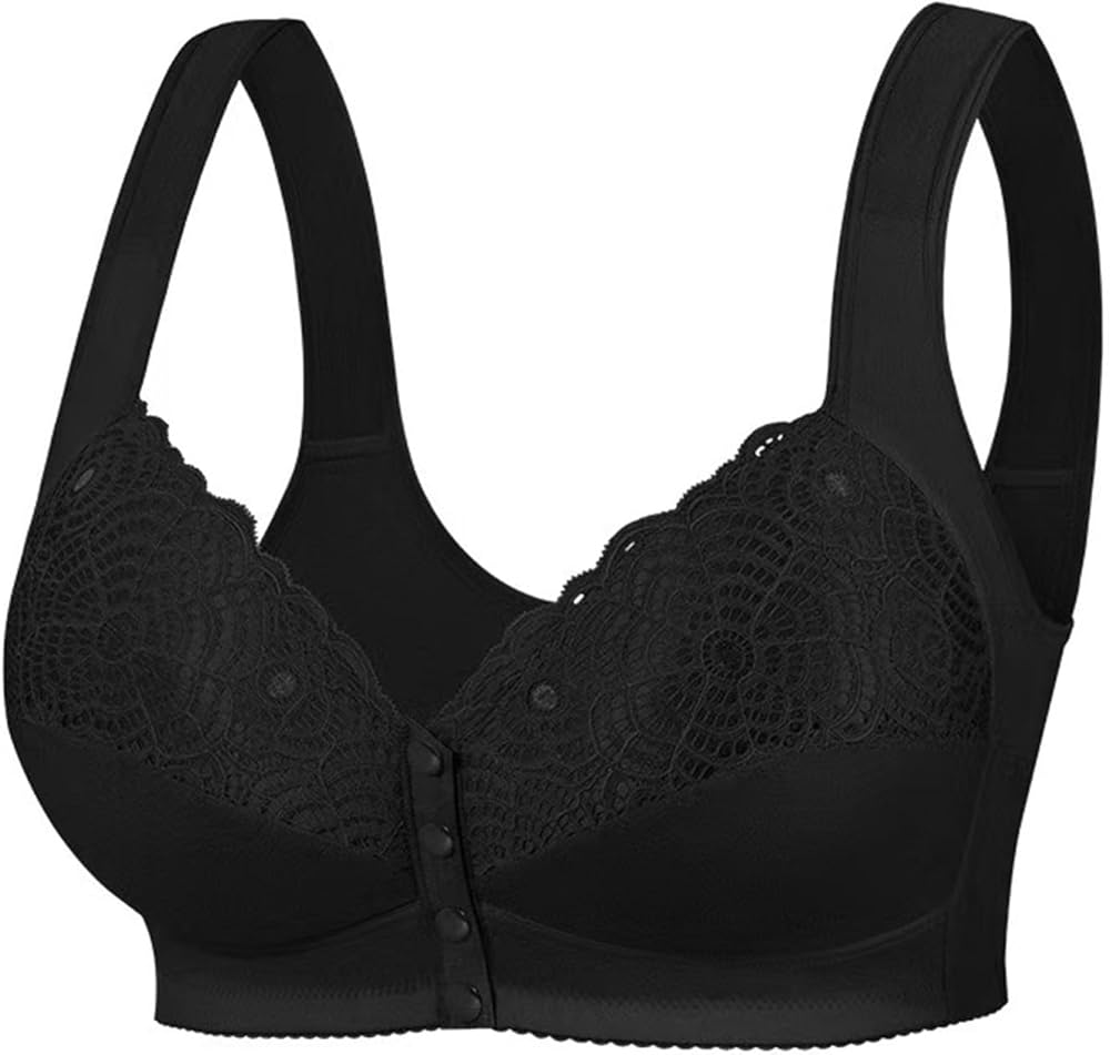 حمالة صدر من الدانتيل، مشبك أمامي، بدون أسلاك داخلية، جوانب أعلى، أكواب ممتلئة، أشرطة أوسع. يجب أن يكون لخزانة الملابس الخاصة بك