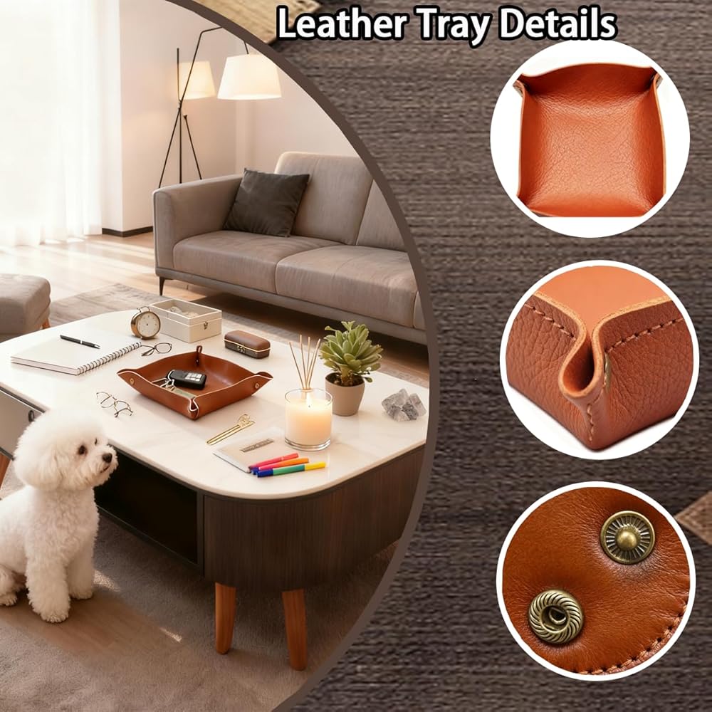 • Rugged Craftsmanship:Engineered with waterproof PU leather and smooth edge trimming, this leather valet tray resists stains for simple cleaning. Reinforced corner buttons and precision stitching ensure lasting durability, making it a dependable key tray for heavy daily use while maintaining luxury appeal.