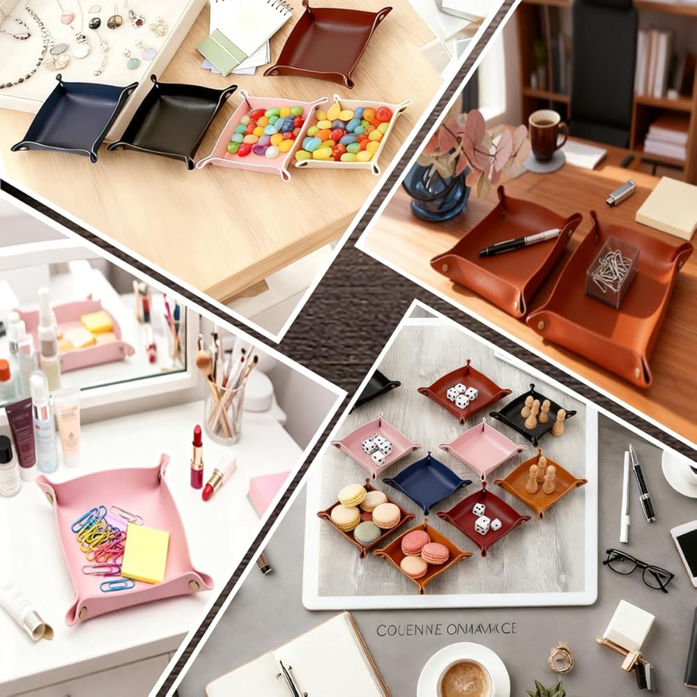 • Elegant Leather:Showcasing timeless square corner button detailing and authentic leather texture, this leather tray radiates sophistication. Choose from rich dark tones or vibrant brights to effortlessly complement any decor, transforming your valet space into a curated display area.