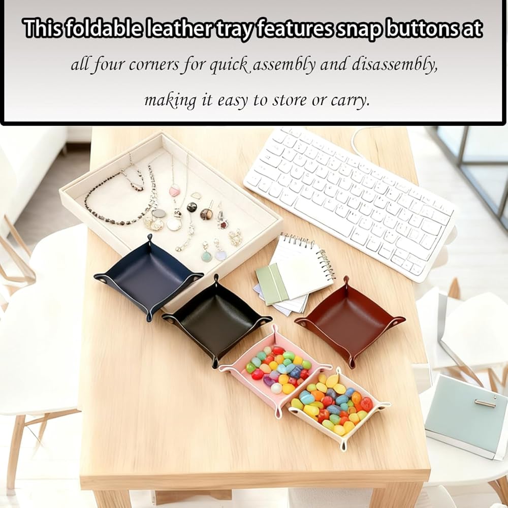 • Portable design:Designed for modern valet needs, this foldable leather tray features four corner snap buttons for instant assembly disassembly. Flatten for slim storage or travel a perfect companion for business trips. Ships flat, ready to transform into a structured valet tray upon unboxing.