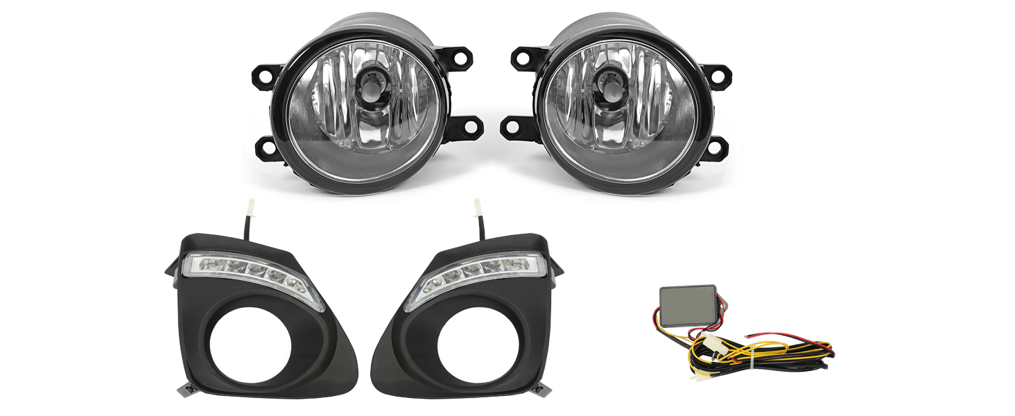 المظهر: مصنوع من البلاستيك عالي الجودة. تتضمن مصابيح الضباب مصابيح H11 مع عدسات زجاجية وختم ممتاز للمتانة في الطقس القاسي