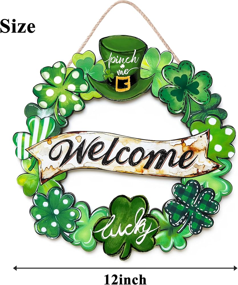 Reasonable Size: The size of St. Patrick's Day wreath is approx 12 x 12 inches, it's suitable for indoor and outdoor decoration use. Easy to hang on the wall or doorway.