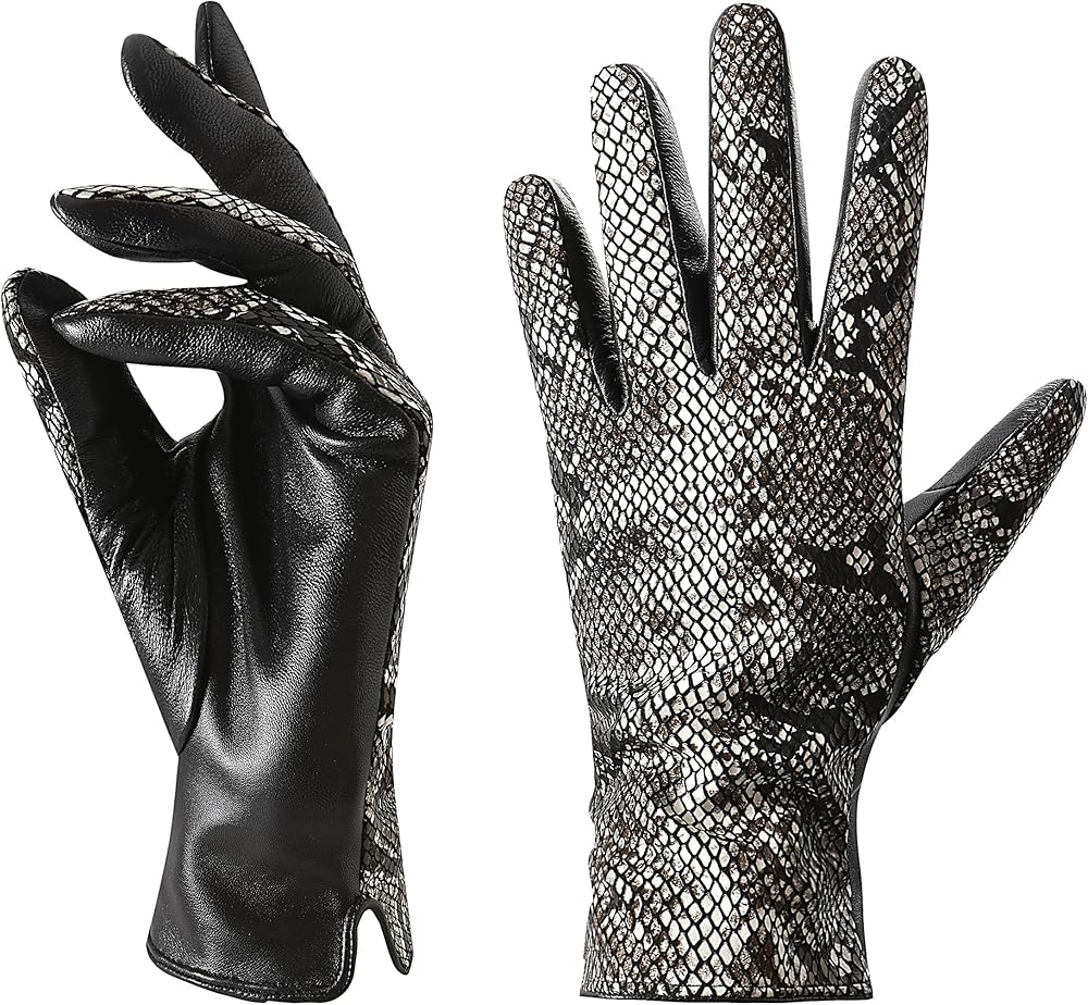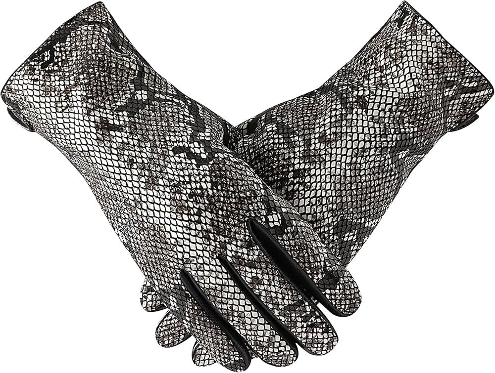Turn Heads with Edgy, Functional Style: Snake Print Mesh Gloves for the Modern Woman Tired of gloves that sacrifice style for practicality? Our Snake Print Women's Gloves solve that—combining head-turning design with everyday convenience, so you can look chic and stay prepared. Statement-Making Pattern: The hyper-realistic python print (in warm brown + black tones) isn't just trendy—it's timeless. It adds a bold, luxe vibe to cocktail dresses, blazers, or even a simple jeans-and-top combo (ideal for date nights, holiday parties, or street-style moments).