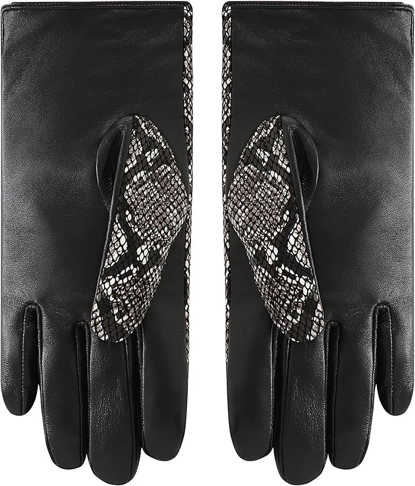قفازات LJYH النسائية من جلد الخراف الأصلي بنمط جلد الثعبان - قفازات شتوية دافئة تعمل باللمس متوافقة مع الكشمير مبطنة بالكشمير، قفازات كلاسيكية للقيادة والسهرات والحفلات والارتداء اليومي للسيدات فضي مقاس واحد