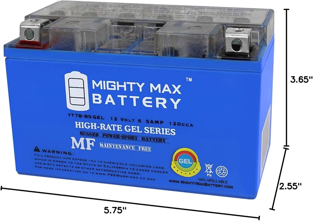 YT7B-BS GEL عبارة عن بطارية جل 12 فولت 6.5AH 120 أمبير تدوير بارد (CCA) (لا تحتاج إلى صيانة)