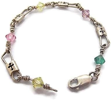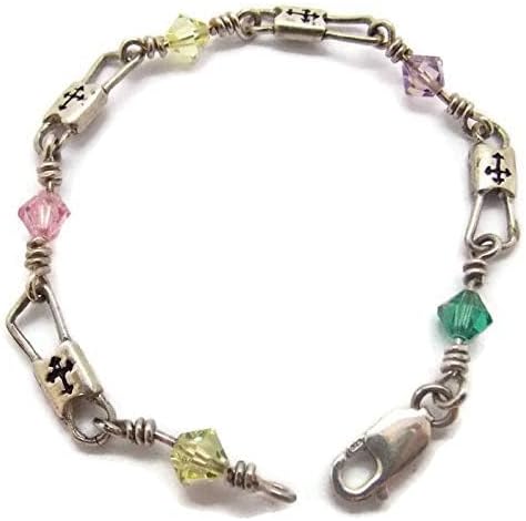 Hand crafted, ACTS (Fishers of Men) .925 sterling silver Budded Link Design bracelet with crystal beads. This bracelet is available in size 7.25, 8, or 9.25 inches. The crystals shown are a default color option. You can also select a single color, two alternating colors, or the colors of your choice. This exquisite bracelet is manufactured by us here in the USA