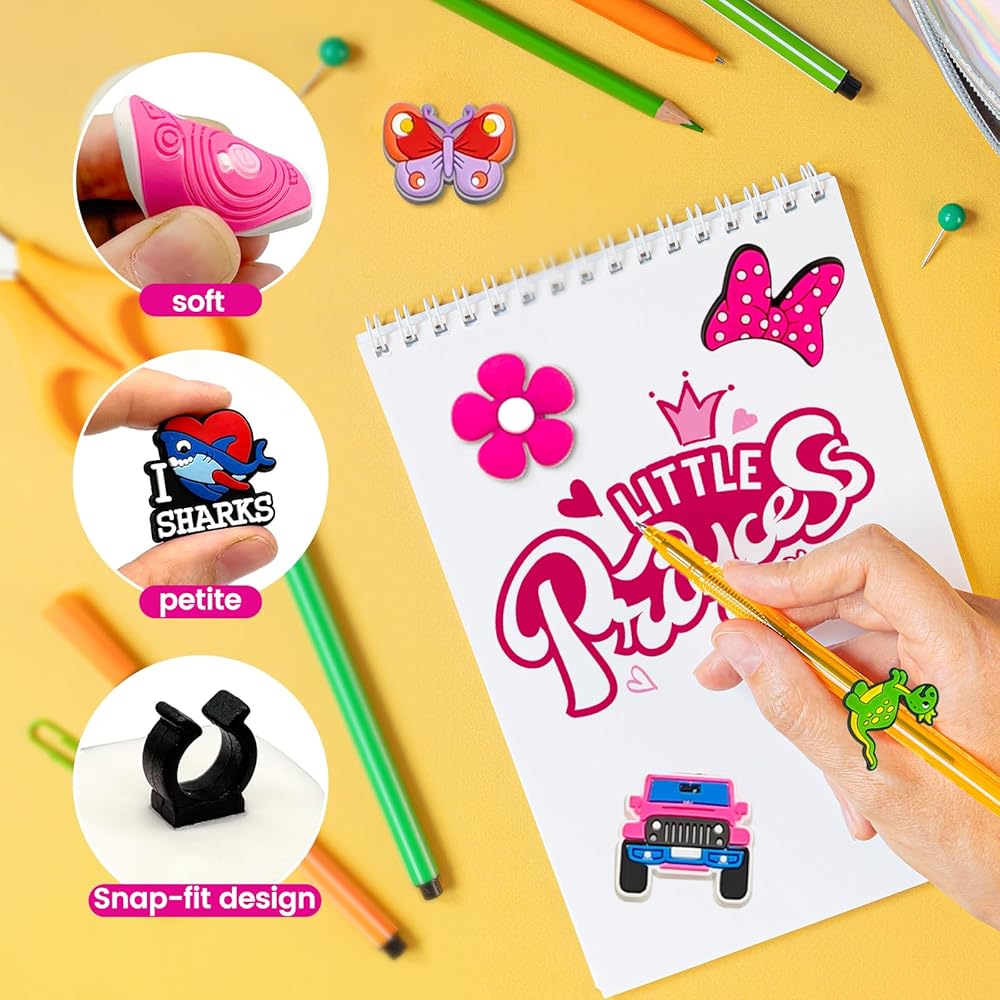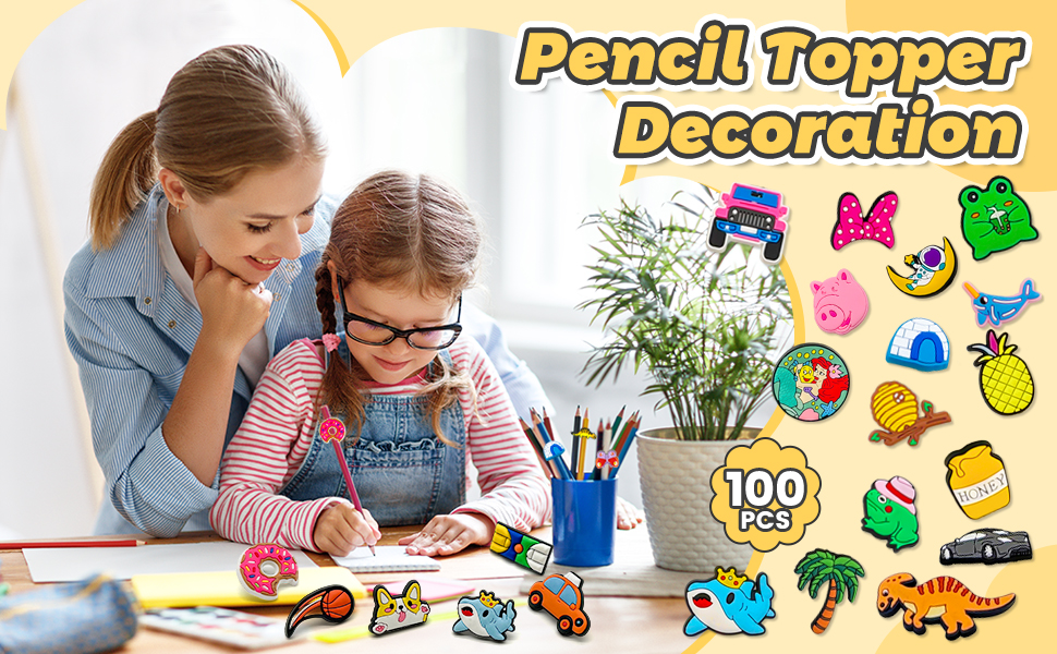 100 قطعة من زينة قلم الرصاص النابضة بالحياة: استمتع بتشكيلة مبهجة من 100 قطعة من زخارف قلم الرصاص اللطيفة، والتي تتميز بأنماط وأنماط مختلفة من شأنها أن ترفع أدوات الكتابة الخاصة بك وتوفر لمسة فريدة لمجموعة القرطاسية الخاصة بك.