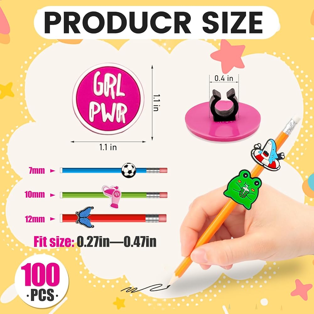 مواد عالية الجودة: مشابك أقلام الرصاص الخاصة بنا مصنوعة من البلاستيك المتين، مما يضمن ألوانًا زاهية ومرونة ممتازة. تم تصميم هذه الإكسسوارات المكونة من 100 قطعة لتتحمل الاستخدام اليومي، مما يجعلها مثالية لتزيين أقلام الرصاص أو الأقلام مع إضافة المرح إلى تجارب تعلم الأطفال.