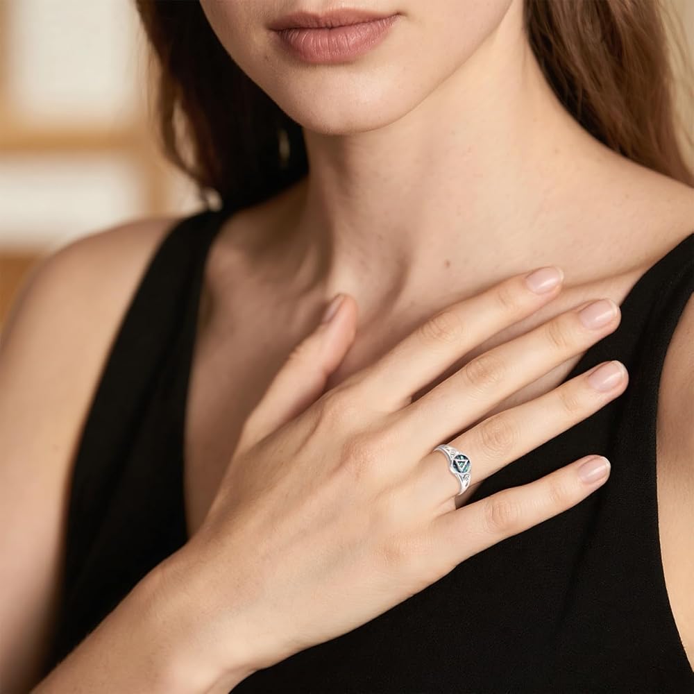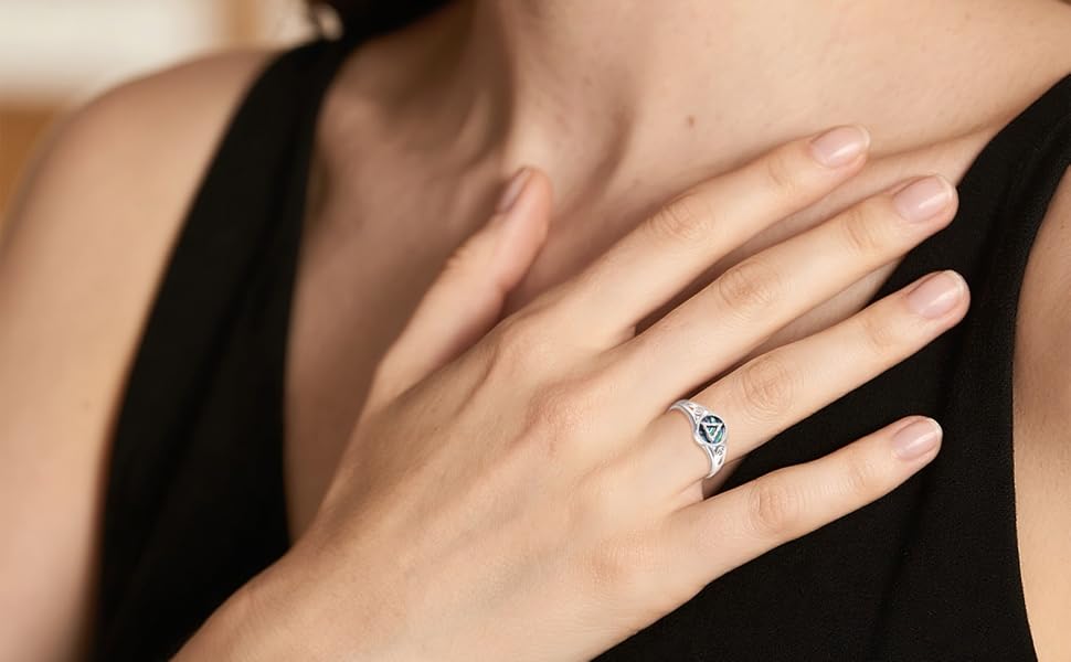 • خامة عالية الجودة: خاتم الرصانة مصنوع من الفضة الإسترلينية عيار 925، ولا يسبب الحساسية. المادة تجعل السطح المعدني ناعمًا ومتينًا، ولا يبهت بسهولة، ولا يصدأ، ولا يفقد بريقه ولا يحول الجلد إلى اللون الأخضر.