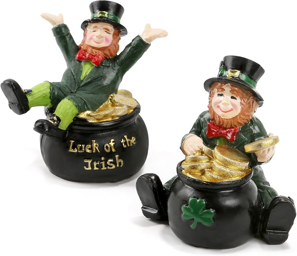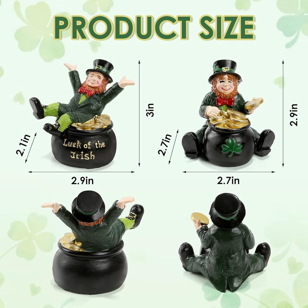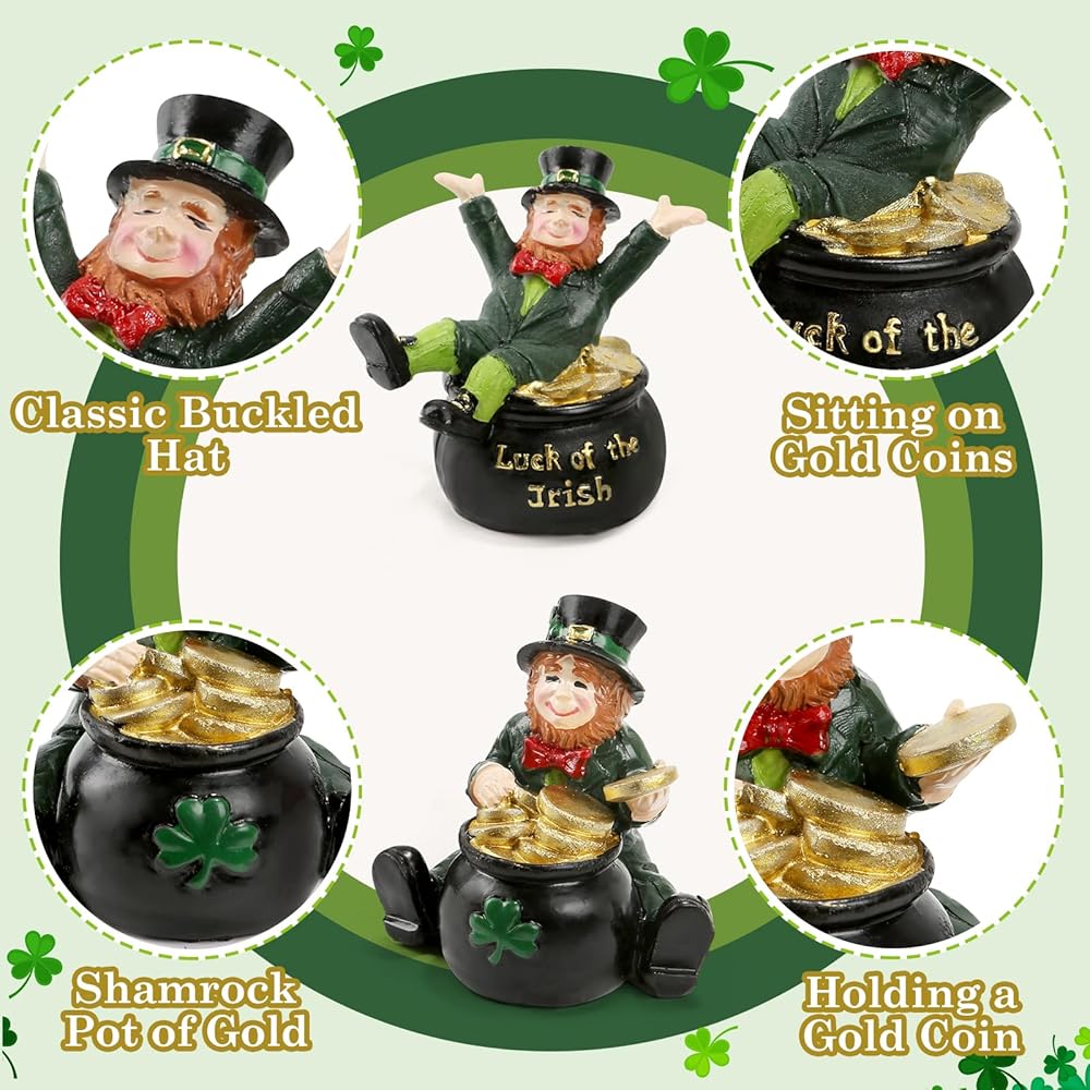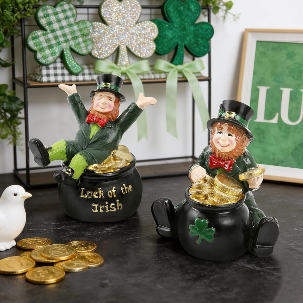 🍀 تماثيل الجني لعيد القديس باتريك - تتميز بأشكال الجني المبهجة التي تجلس على وعاء كلاسيكي من الذهب، وتلتقط المرح والروح الاحتفالية لعيد القديس باتريك.