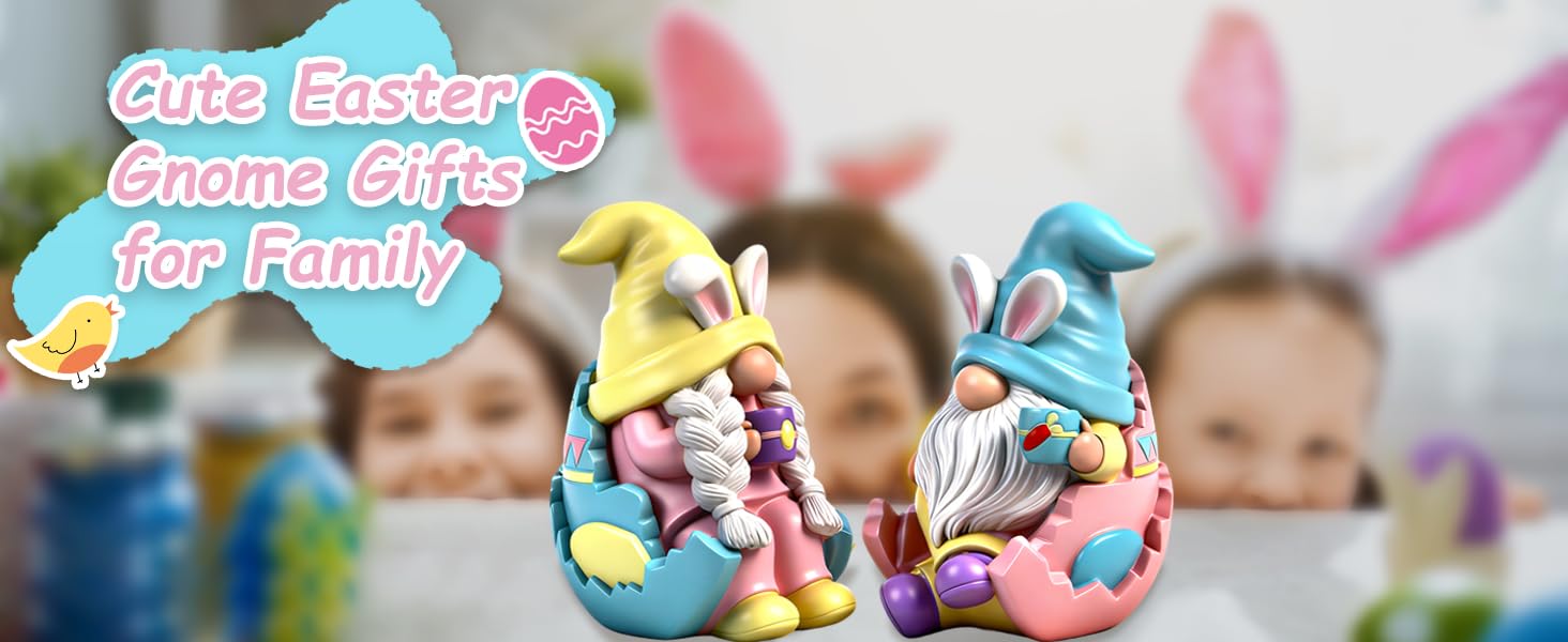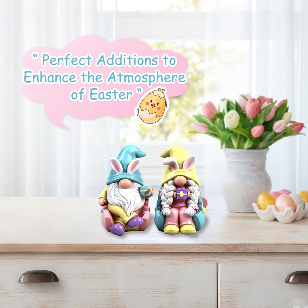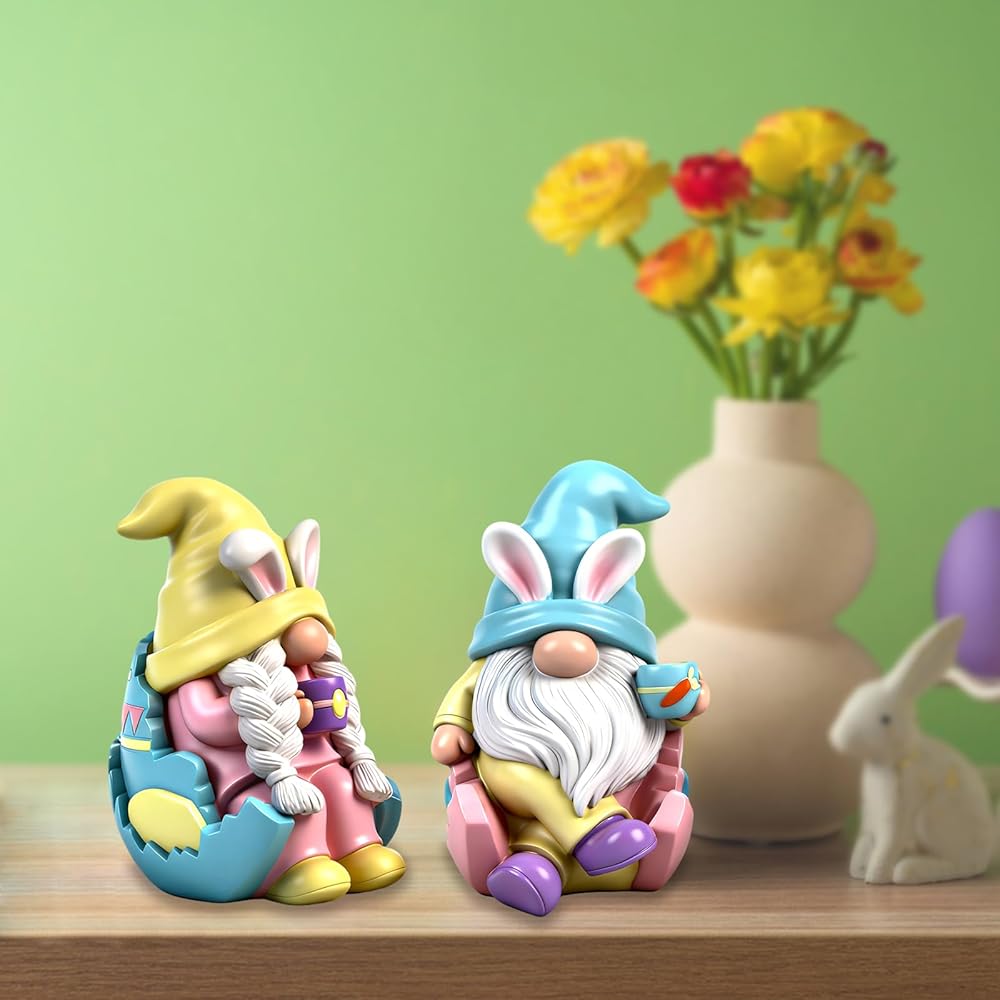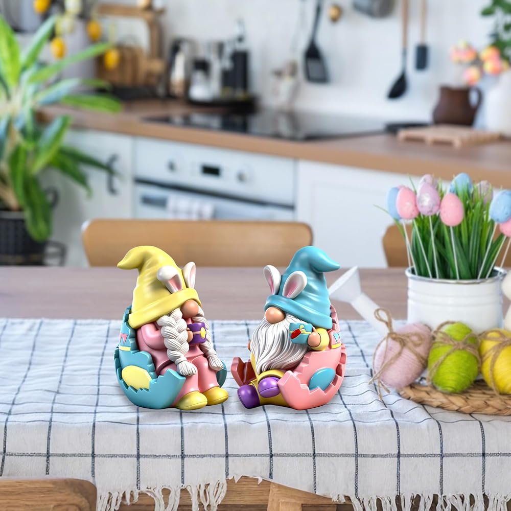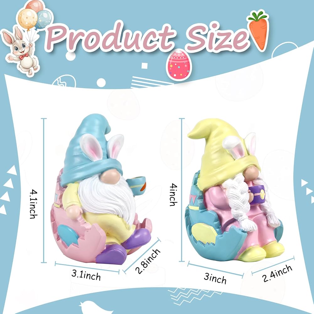 【البعد المناسب】: يبلغ حجم تمثال جنوم الرجالي حوالي 3.1 × 2.8 × 4.1 بوصة والديكور النسائي حوالي 3 × 2.4 × 4 بوصة. ديكورات عيد الفصح المنزلية هذه مناسبة للرف أو الرف أو الطاولة.