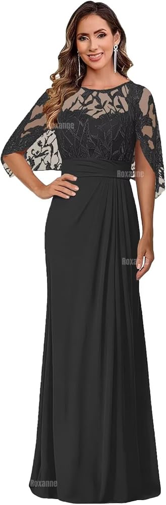 Lace Applique Mother of The Bride Dresses for Women Cap Sleeve Formal Evening Gowns with Shawl Chiffon Pleated Wedding Guest Dress Long