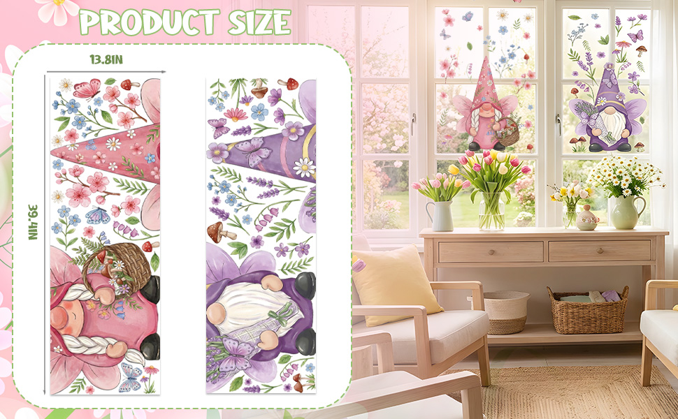 متعددة الاستخدامات: مصممة لأكثر من مجرد ديكورات حفلات الربيع، فإن ملصقات النوافذ الربيعية هذه تكمل موضوعات عيد الفصح والعروض الموسمية والإعدادات الاحتفالية. يضفي تصميم القزم الكلاسيكي جوًا ربيعيًا مبهجًا ومنعشًا على النوافذ والأبواب الزجاجية والمساحات المزخرفة، مما يساعدك على خلق بيئة موسمية مبهجة دون عناء.