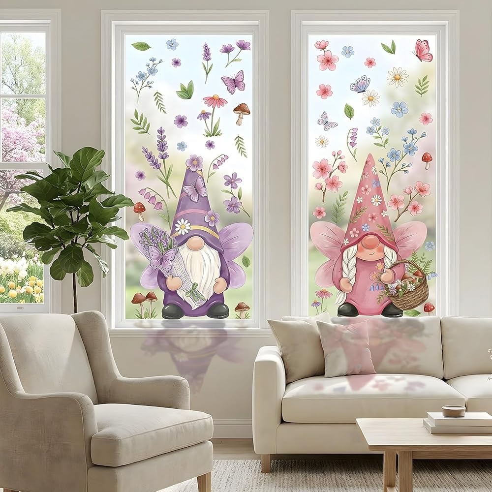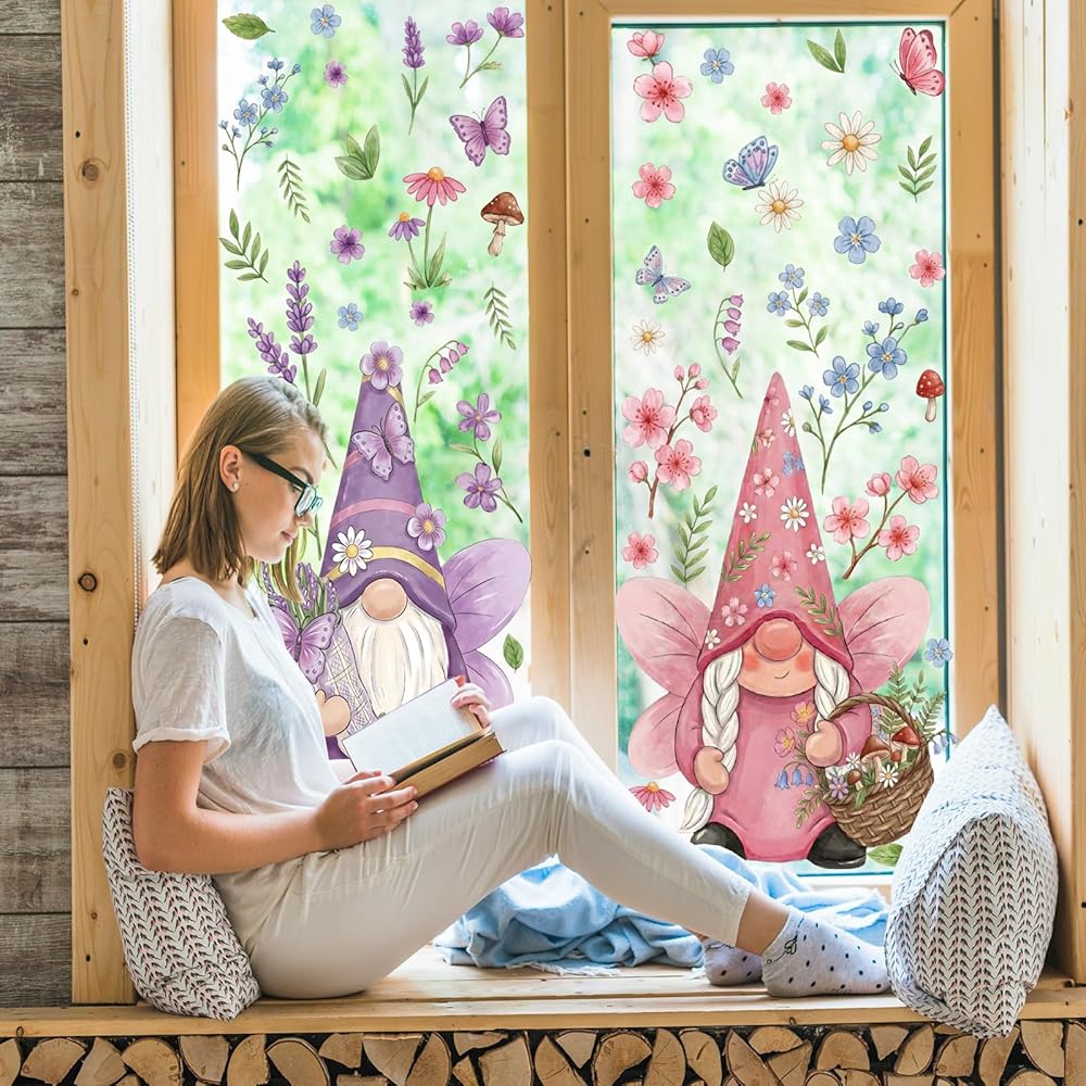 موضوع زهور جنوم الربيع: مجموعة ملصقات النوافذ الكبيرة الربيعية الخاصة بنا تبرز شكل جنوم ساحر جنبًا إلى جنب مع الزهور المزهرة والفراشات والعناصر الموسمية الطازجة. يمزج العمل الفني التفصيلي والألوان ذات الطبقات بين سحر جنوم عيد الفصح مع جماليات زهور الربيع، مما يضفي العمق والحيوية الاحتفالية على تجمعات الربيع واحتفالات عيد الفصح.