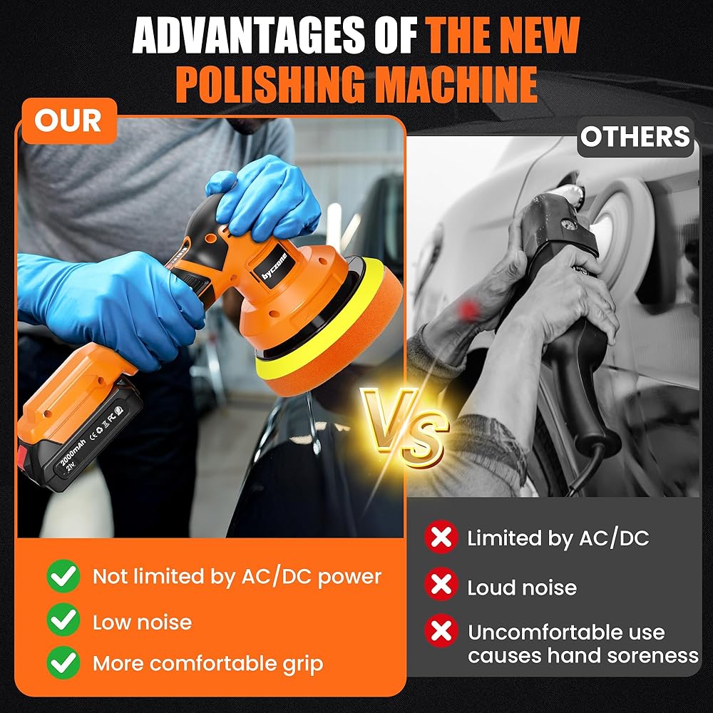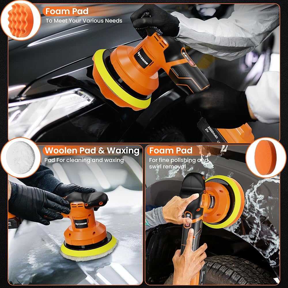 تصميم لاسلكي موفر للوقت والمال - يعمل عازل السيارة اللاسلكي المطور هذا على التخلص من متاعب الأسلاك المتشابكة، مما يوفر إمكانية حمل فائقة مقارنة بأدوات التلميع السلكية التقليدية. فهو يزيل الخدوش والعلامات الدوامة بكفاءة ويعيد طلاء السيارة إلى لمسة نهائية لامعة، ويعمل بمثابة ملمع مزدوج فعال من حيث التكلفة ومثالي للحصول على نتائج تفصيلية سريعة واستخدام طويل الأمد.