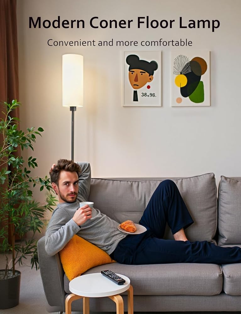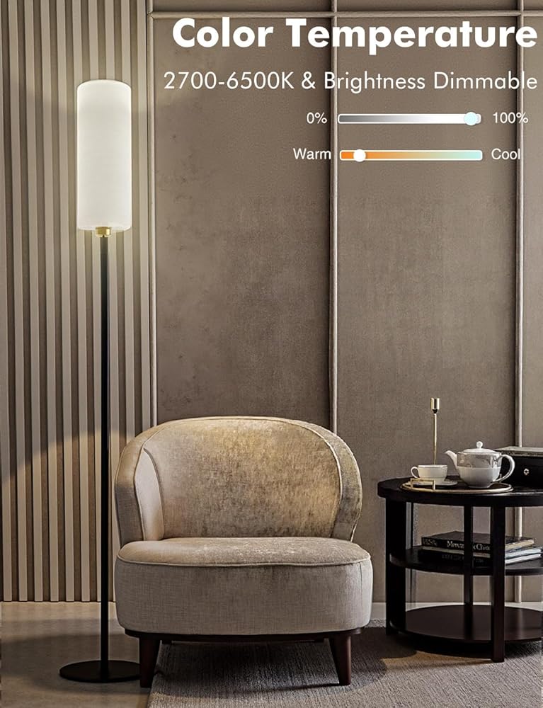 ✨【Cozy Room Light】Whether you read books in a recliner, or work at a desk, the living room floor lamp fits easily beside your furniture. Its slender design allows it to position well near sofas, armchairs, side tables etc. Its weighted base 5.5LB that ensures stability. So it is easy to reposition and without taking much visual space.