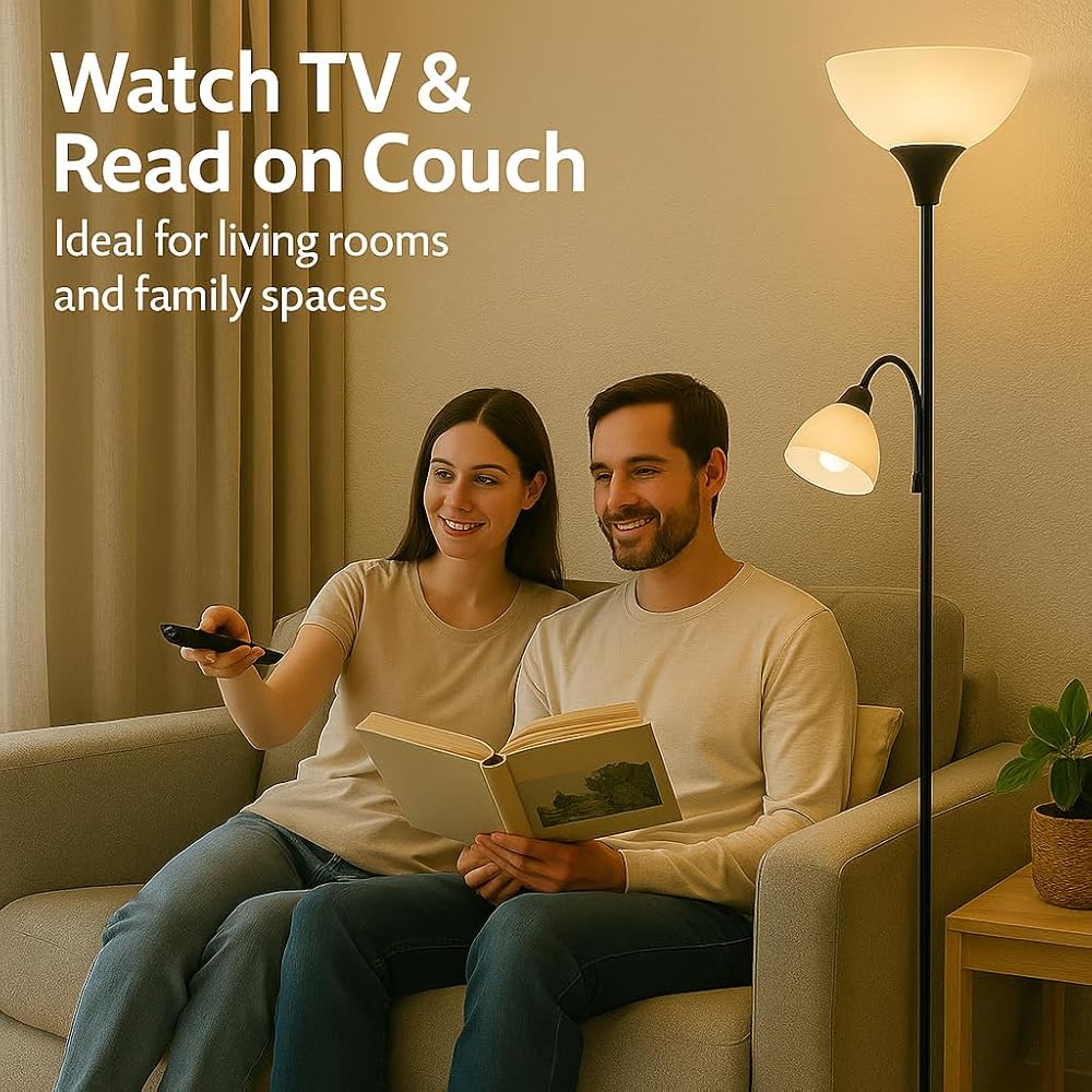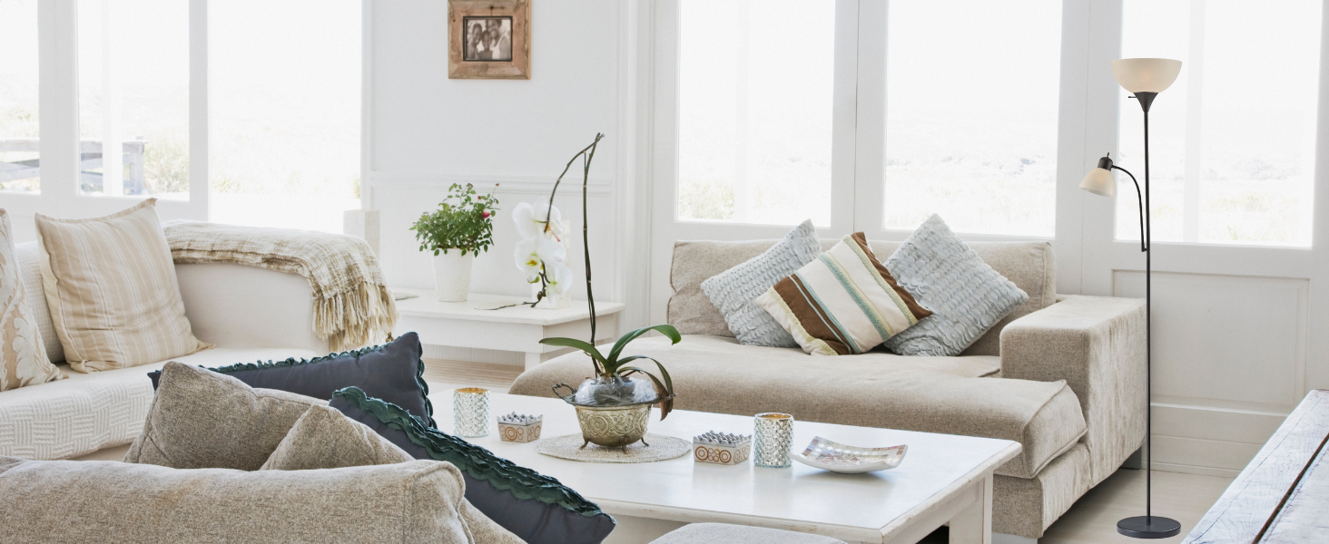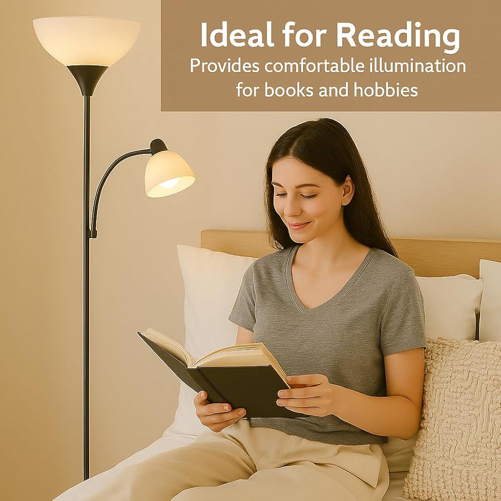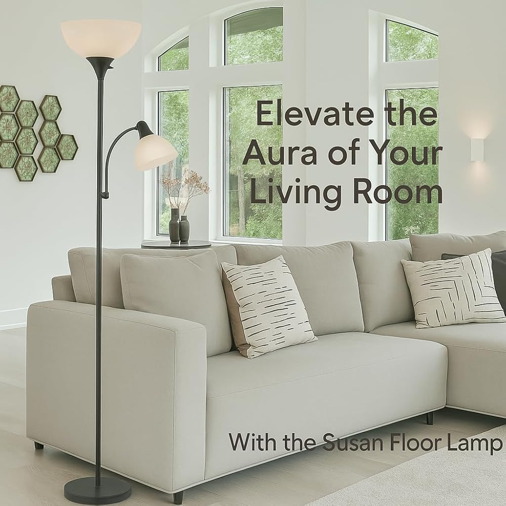 مصباح أرضي أسود قابل للتعديل مع ضوء للقراءة، مصباح طويل لغرفة المعيشة وغرفة النوم والمكتب ومصابيح سوزان 72 بوصة لغرفة المعيشة، ضوء الزاوية، مصباح حامل، مصابيح أرضية لغرفة المعيشة الحديثة