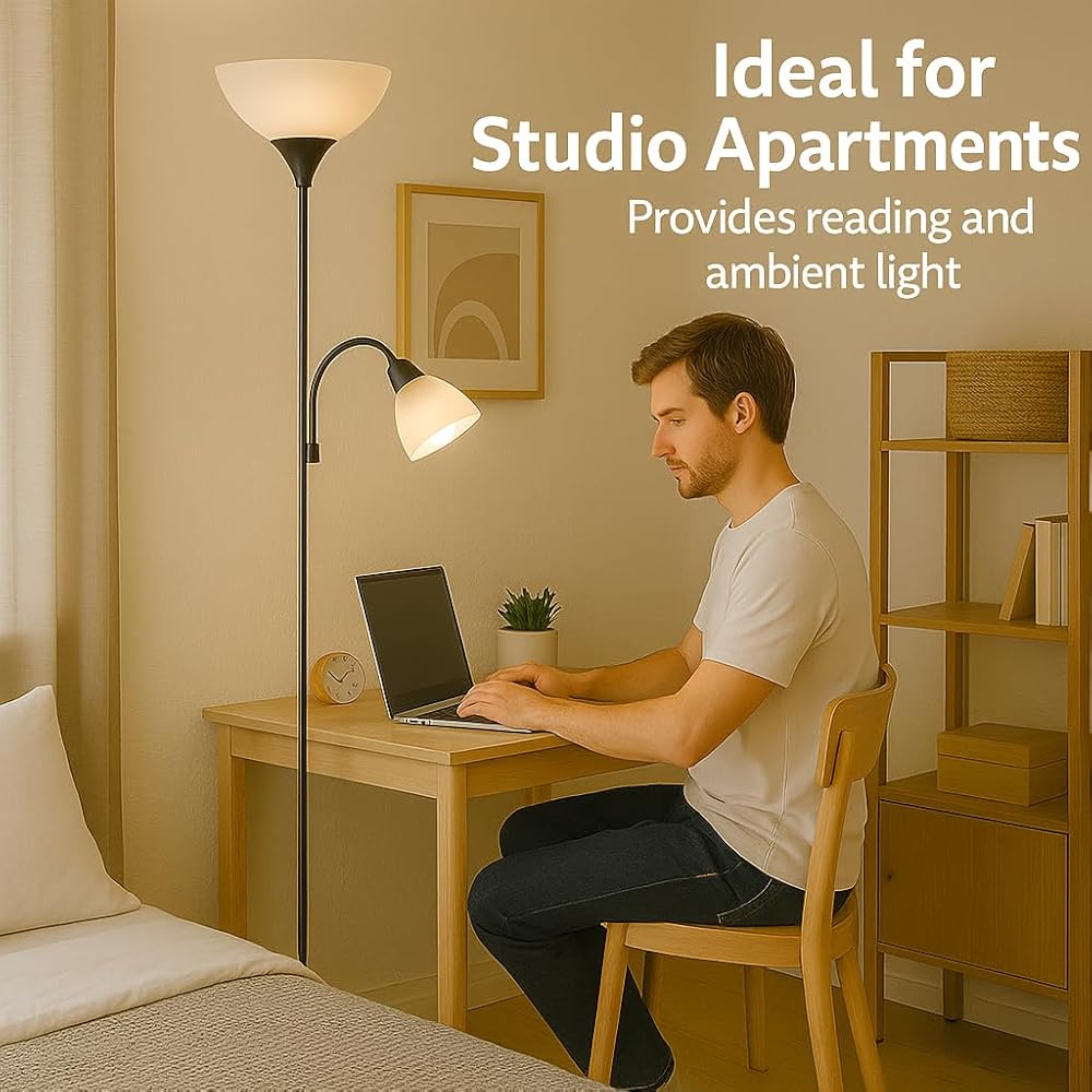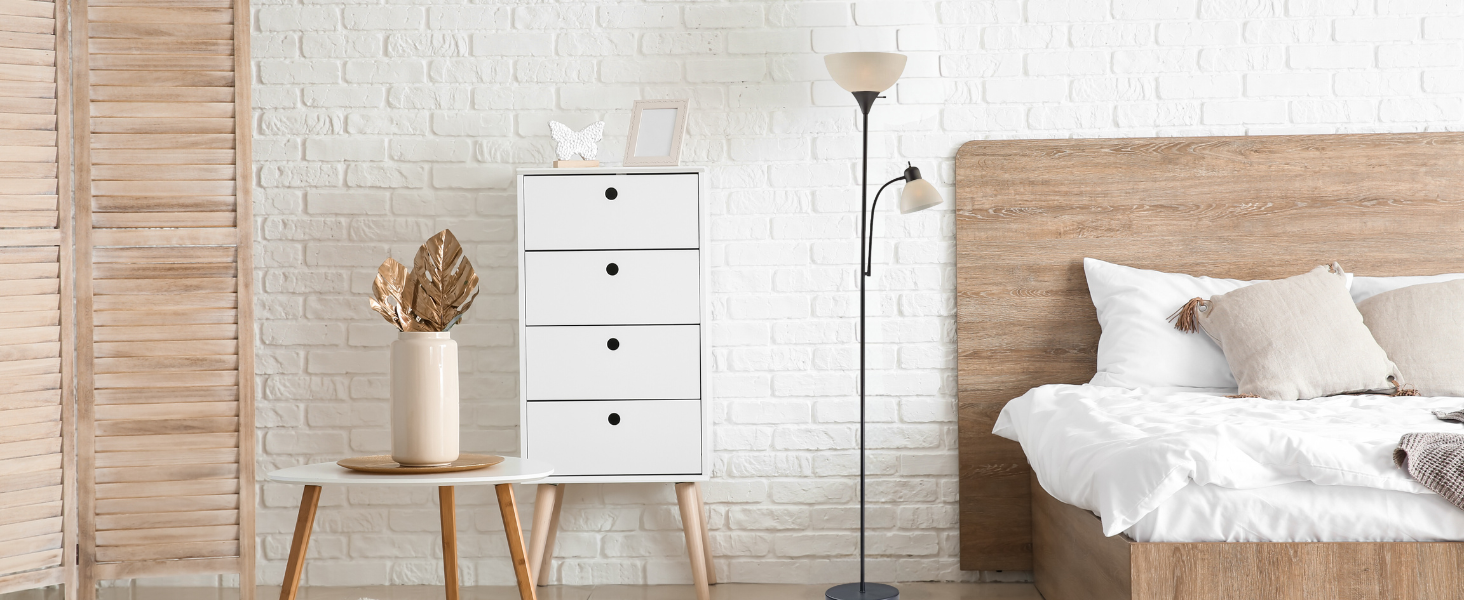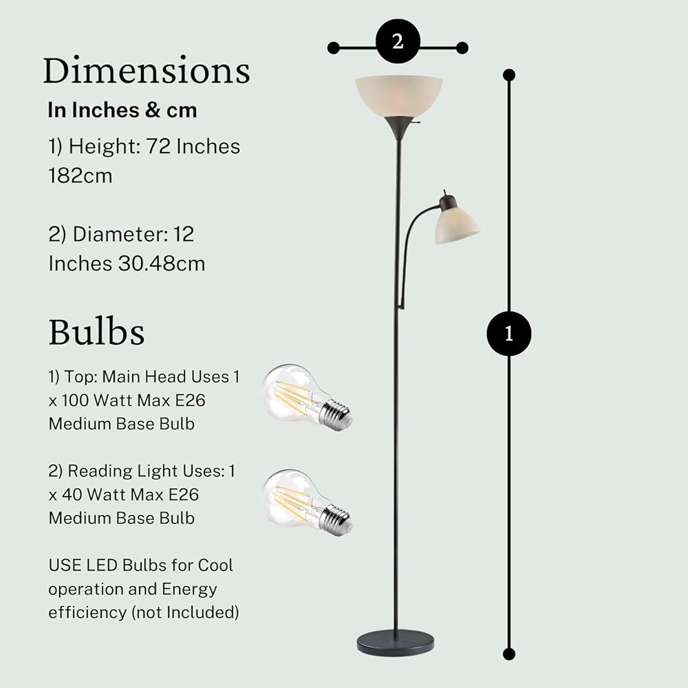 مناسب لأي مساحة: هذا المصباح الأرضي القابل للتعتيم مناسب تمامًا لغرف النوم أو غرف المعيشة أو مساكن الطلبة أو المكاتب المنزلية أو غرف الرضاعة. الجسم المعدني الصلب والقاعدة الموزونة سوف يبقيه ثابتًا وآمنًا.