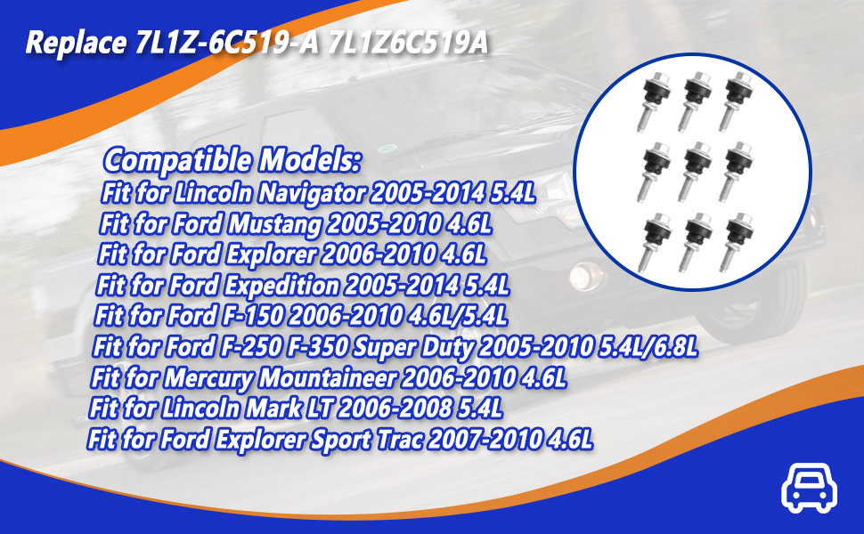 التكيف الدقيق: مناسب تمامًا لسيارة Ford Expedition 2005-2014 5.4L، لسيارة Lincoln Navigator 2005-2014 5.4L، لسيارة Ford Explorer 2006-2010 4.6L، Ford F-150 2006-2010 4.6L/5.4L، Ford F-250 F-350 Super Duty 2005-2010 5.4L/6.8L، فورد موستانج 2005-2010 4.6L، ميركوري ماونتينير 2006-2010 4.6L، لينكولن مارك LT 2006-2008 5.4L، فورد إكسبلورر سبورت تراك 2007-2010 4.6L