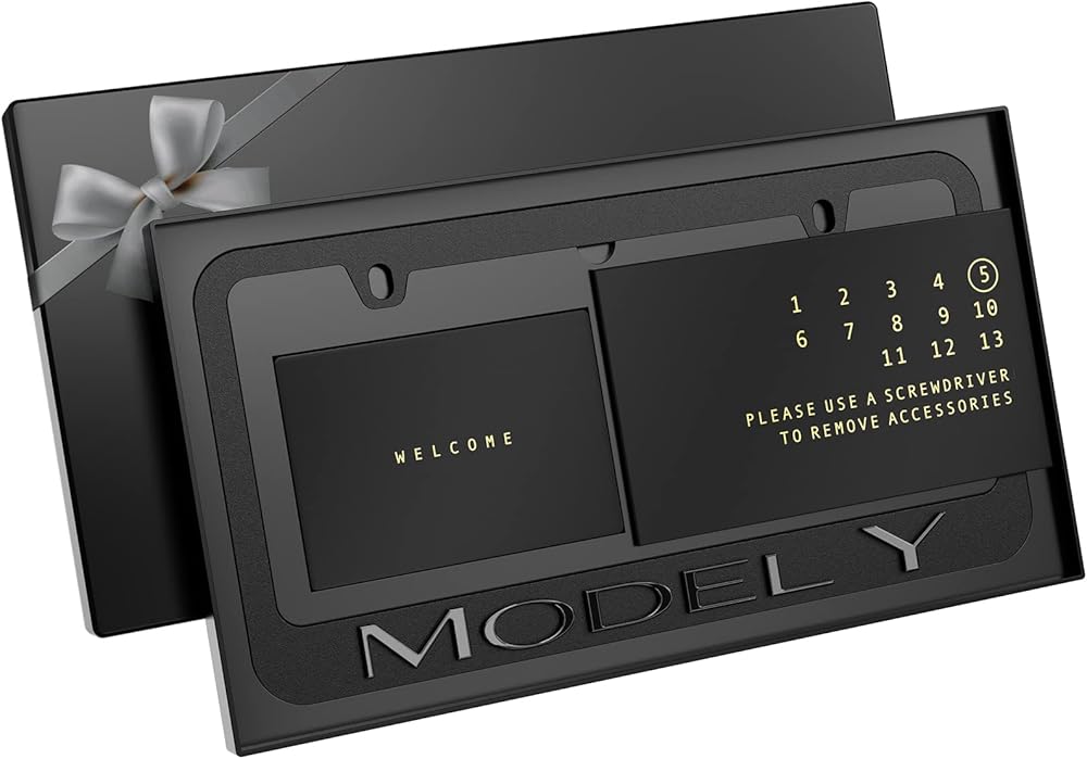 This black license plate frame is designed for a clean, factory-style look on Model Y. Crafted from durable aluminum alloy with a matte black finish, it delivers a minimalist appearance while standing up to daily driving and weather exposure. Precise fitment, smooth edges, and included mounting hardware ensure a secure, rattle-free installation without damaging your plate.