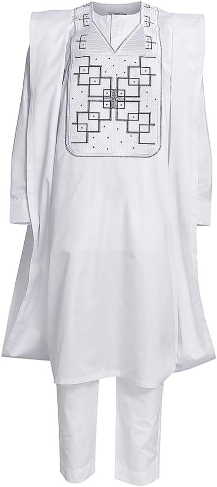 Robe Shirt Pant 3 Pcs Suit:Men's Embroidery Agbada