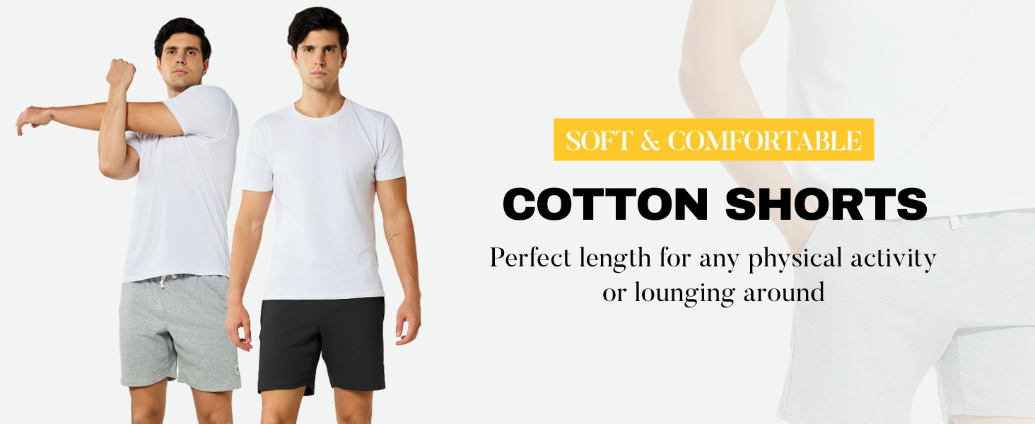 High-quality Material - 80% Cotton 20% Polyester. Mens cotton sweat shorts with stretch keeps from pilling and shrinking. Moisture-wicking fabric breathes well while at the gym. Soft and comfortable short shorts for men to wear when lounge around