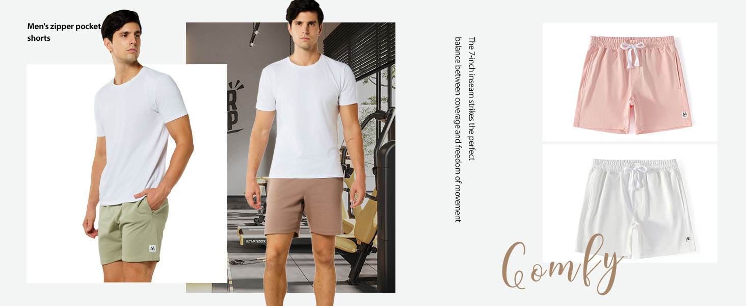 Stylish Design - NIMENJOJA men's 7 inch inseam shorts that aren't afraid to show a little bit of thigh without baggy legs. They fit great everywhere (waist, butt, and thigh) and don't ride up when walking and jogging