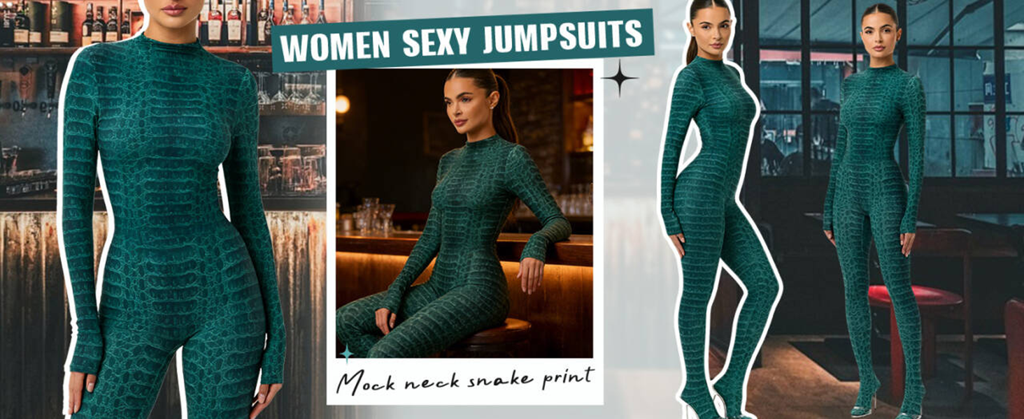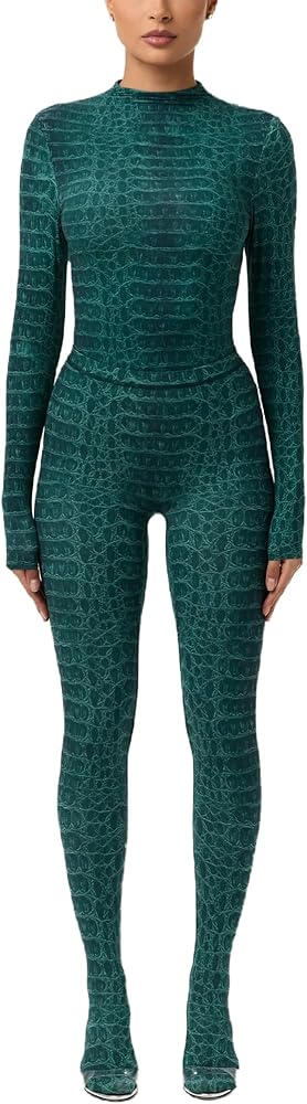 جمبسوت مثير للنساء بأكمام طويلة وطباعة رقبة وهمية وسروال ضيق للجسم بالكامل للخروج in Kuwait