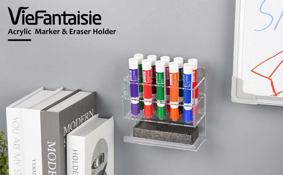 • 【حامل أقلام التحديد البسيط والأنيق】يعرض حامل أقلام المسح الجاف VieFantaisie ذو 10 فتحات سطحًا مصقولًا مع بريق زجاجي أنيق. تصميمه الأنيق يكمل مكتبك أو فصلك الدراسي بشكل مثالي، مما يعزز الجمال العام لمساحة العمل الخاصة بك. يتميز التصميم ذو الطبقتين بفتحات في الدرج السفلي بحجم مثالي لتثبيت أطراف أقلام المسح الجافة القياسية في مكانها بشكل آمن.