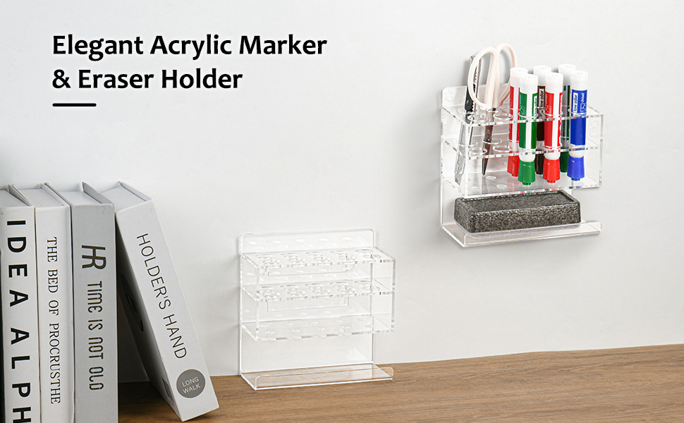 • 【طريقتان للتثبيت】فقط قم بتثبيت حامل أقلام تحديد الحائط الجاف الأكريليك الخاص بنا دون عناء بجوار السبورة البيضاء الخاصة بك باستخدام البراغي وأدوات التثبيت المتضمنة. وبدلاً من ذلك، كخيار خالٍ من الحفر، ما عليك سوى لصق حامل قلم السبورة البيضاء على الحائط باستخدام الأشرطة اللاصقة المتضمنة. (لا يتم تضمين صانعي وممحاة في الحزمة.)