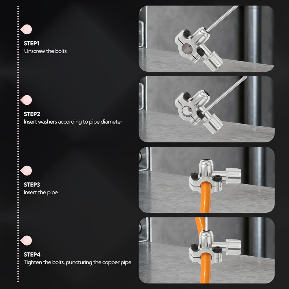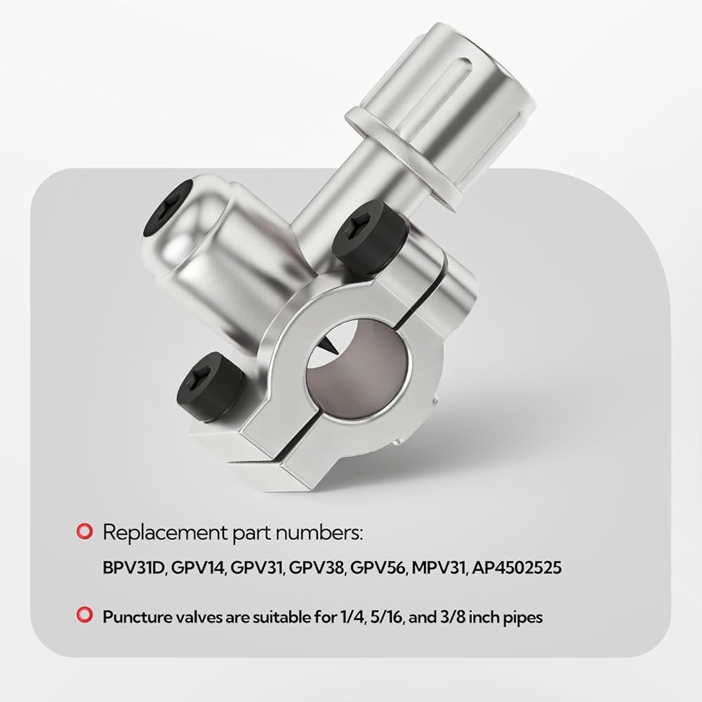 Size: Puncture valves are suitable for 1/4, 5/16, and 3/8 inch pipes
