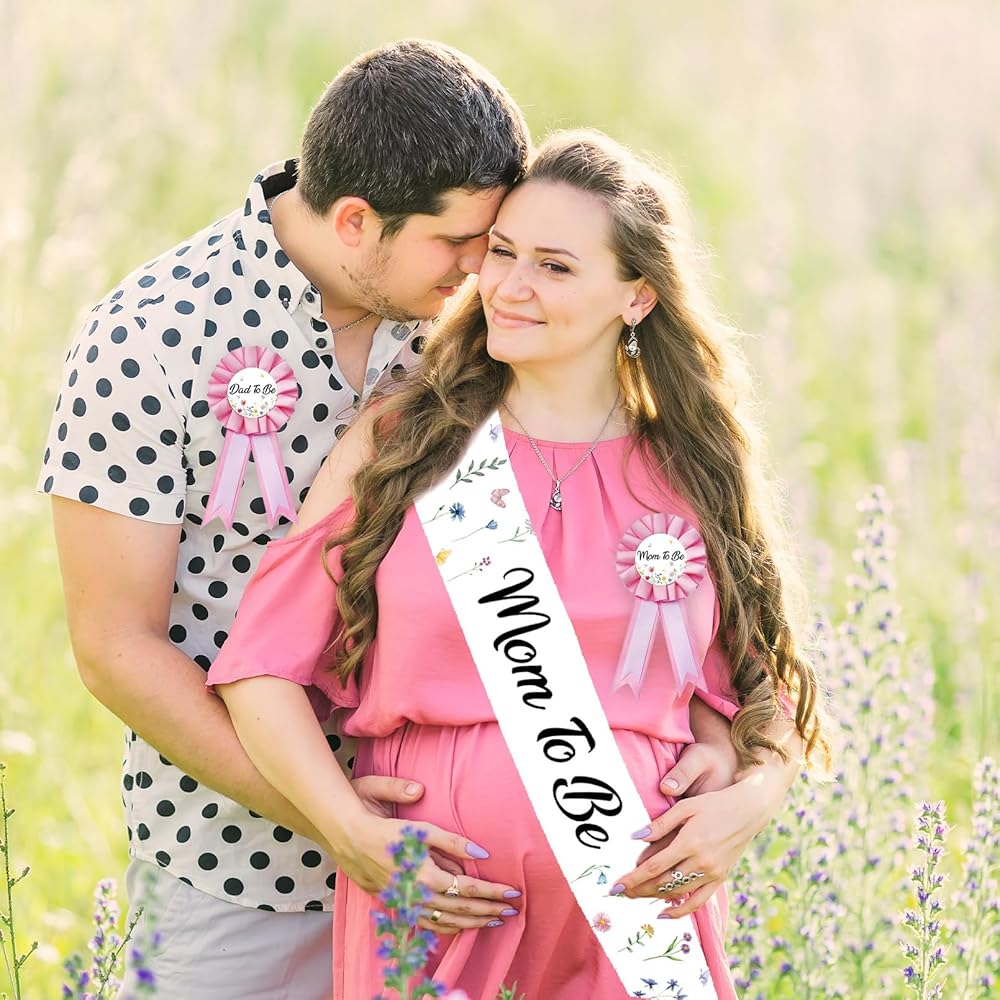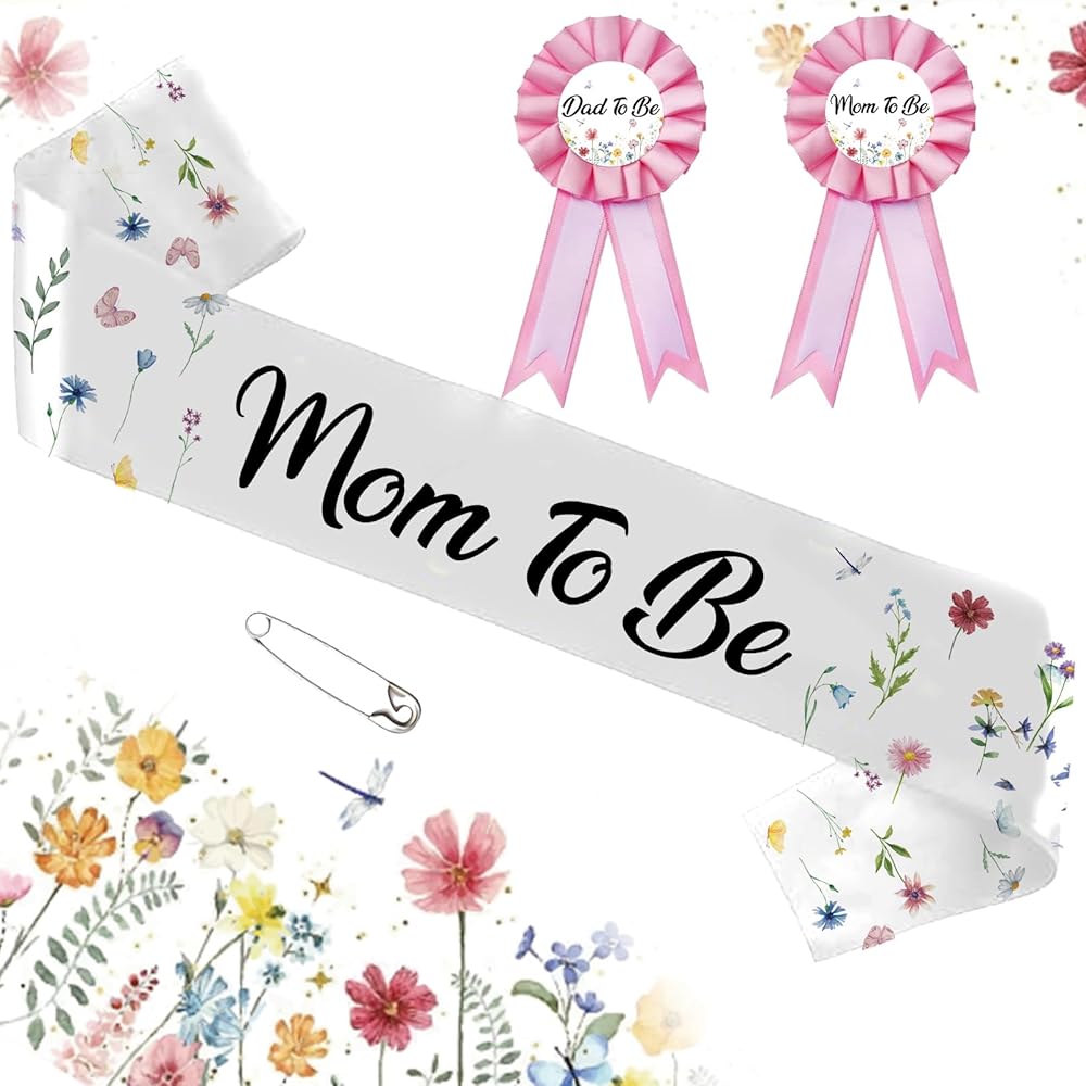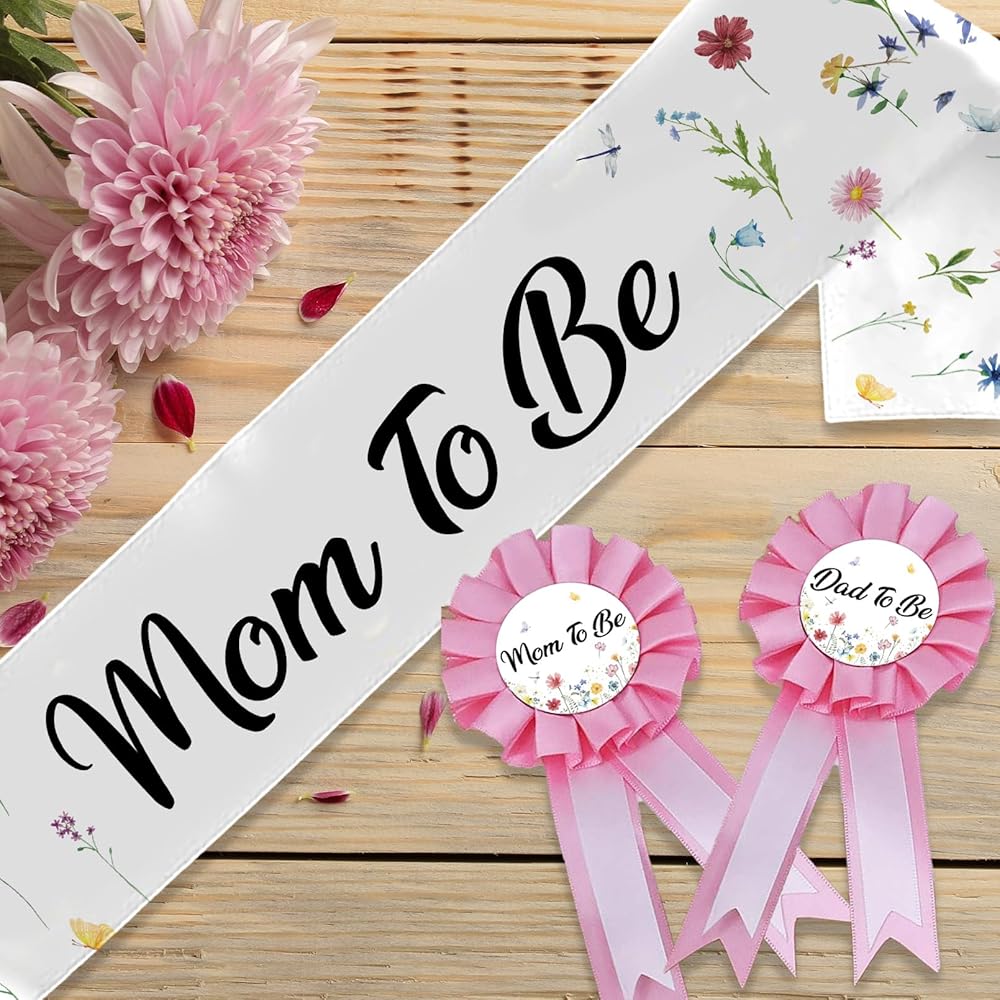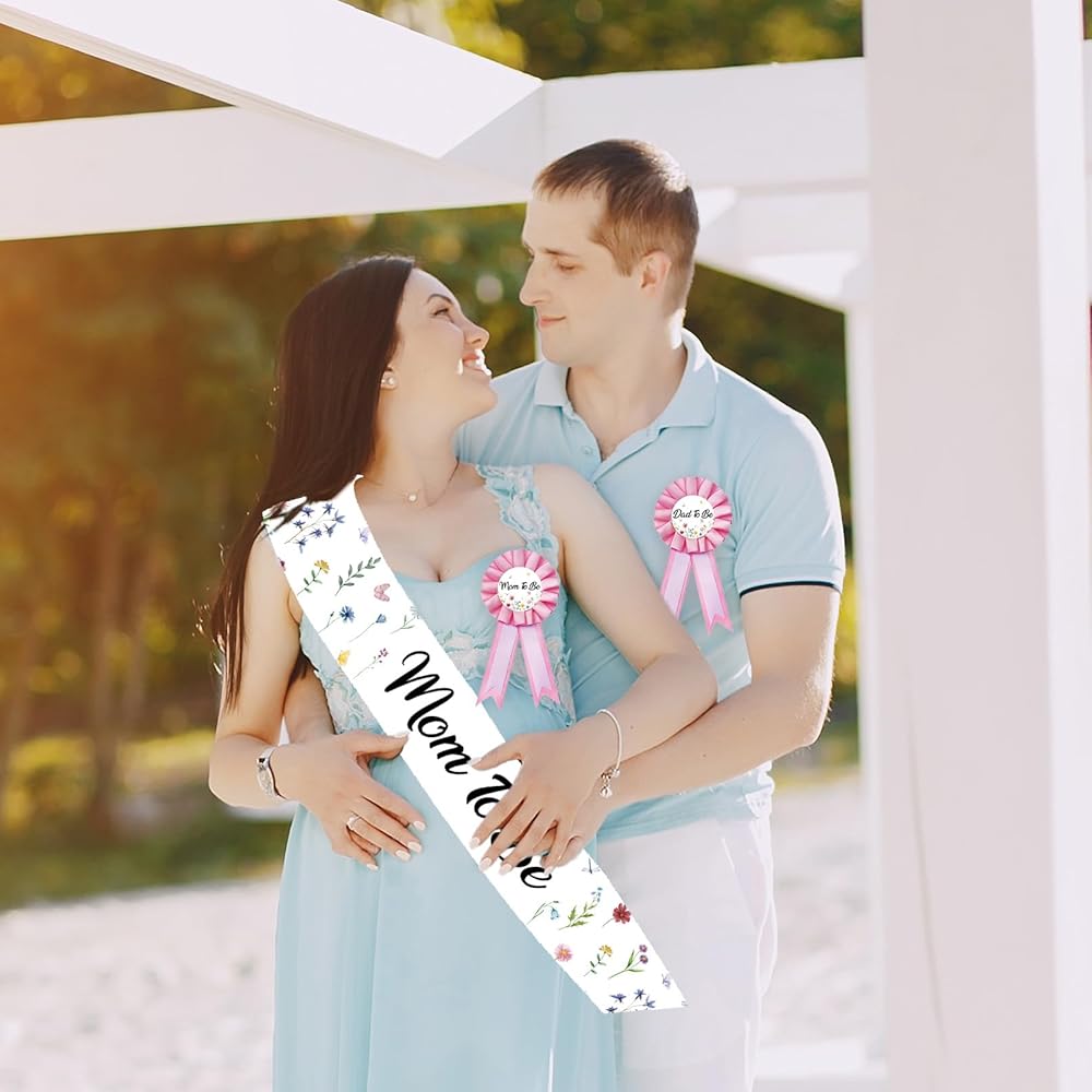 • Complete Baby Shower Set: This elegant wildflower mom to be sash set includes a delicate floral pregnant mom sash, two coordinating "Mom To Be" and "Dad To Be" boutonnieres, plus a secure-fit pin, creating the mom to be sash baby shower ensemble for expecting parents celebrating their baby in bloom.