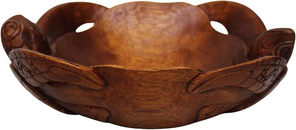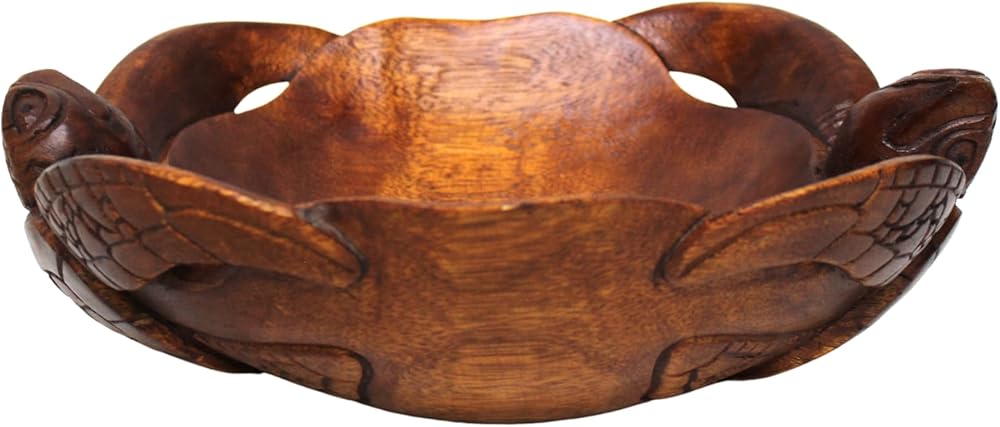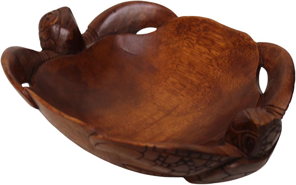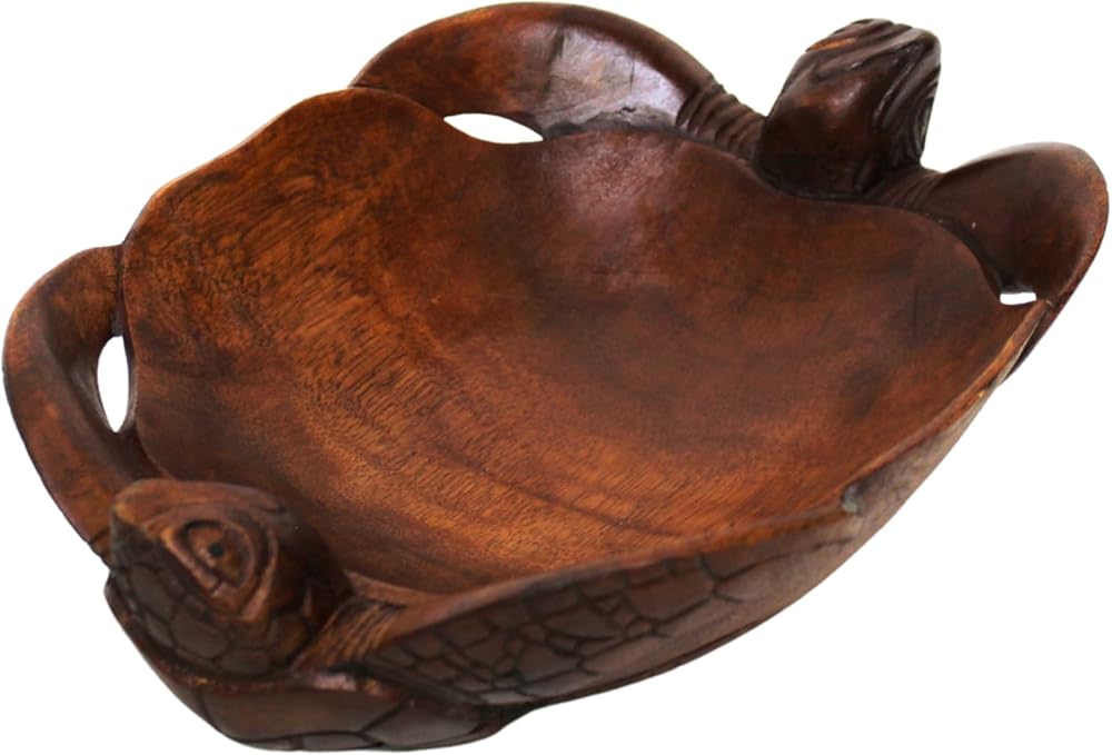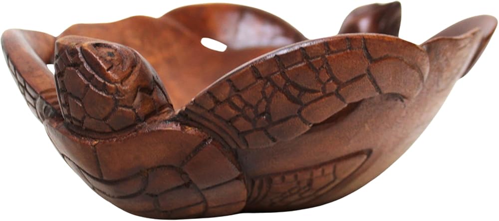 Absolutely gorgeous hand carved and finished Mahogany turtle bowl. It is amazingly detailed, just look at the pictures!!! Perfect for any kitchen or home, especially for turtle lovers! Measuring 11 inches long, 8.5 inches wide, and 3.5 inches tall, this is a perfect size bowl!!! IT would make a great gift for any ocean life lover!!! Please allow variation in size and color due to items being handmade.
