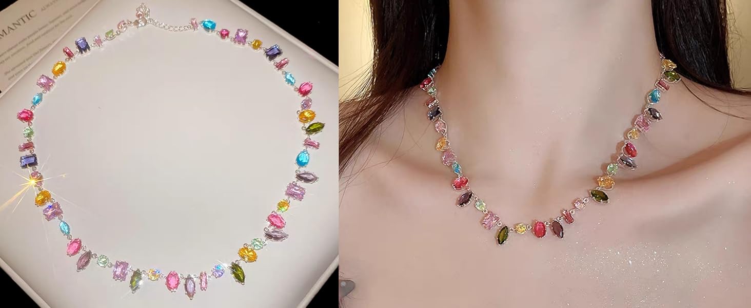 💖【بسيطة وأنيقة】تجمع هذه القلادة ذات سلسلة قوس قزح تشيكوسلوفاكيا متعددة الألوان بين دقة وجودة الكريستال المتلألئ، وتحافظ على لمعانها ولافتة للنظر، وخالية من الرصاص والنيكل، ولن تؤذي قلادة تشيكوسلوفاكيا بشرتك الحساسة.