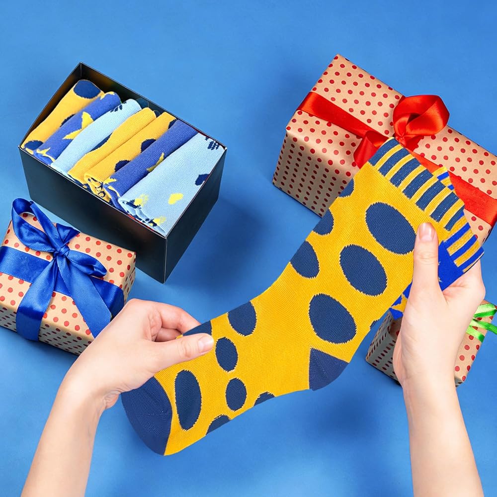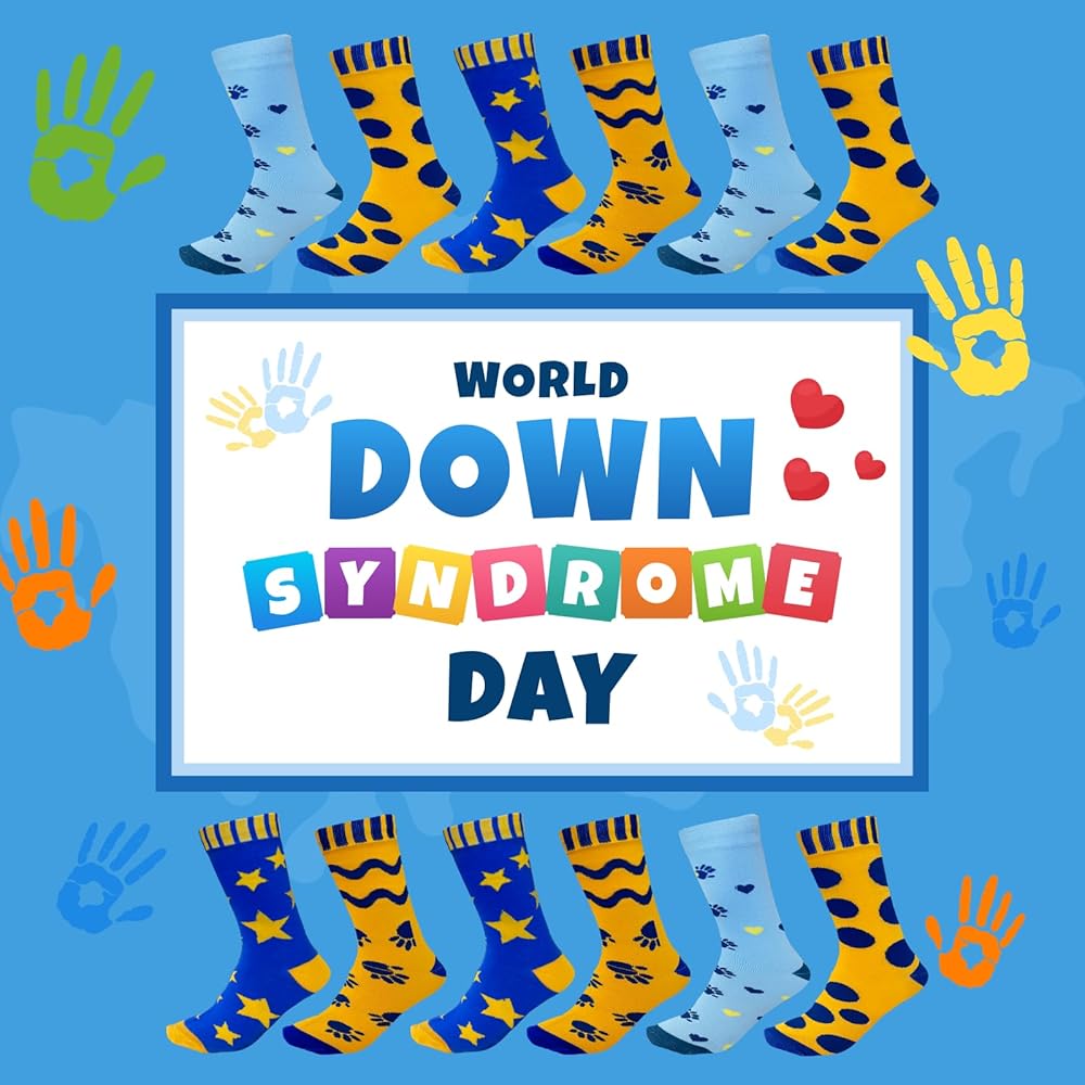 World Down Syndrome Awareness Theme: Designed to support Down Syndrome awareness, these socks feature blue and yellow elements and ribbon patterns, iconic symbols of the cause; wearing them daily carries significant meaning. Embrace inclusivity and celebrate unique abilities with our Down Syndrome Awareness Socks. The bright design spreads positive energy