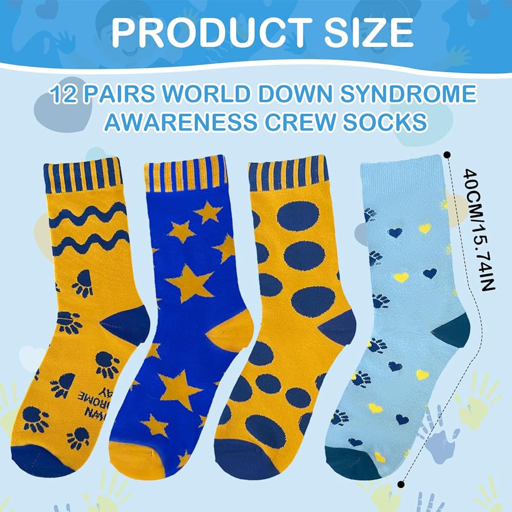 Package Includes: Our Down Syndrome Day crew socks include 12 pairs of Down Syndrome awareness socks in 4 unique designs, with 3 pairs of each design. Suitable for various events such as charity events, awareness walks, and community gatherings, they can be used as gifts or prizes to show support and raise awareness for Down Syndrome