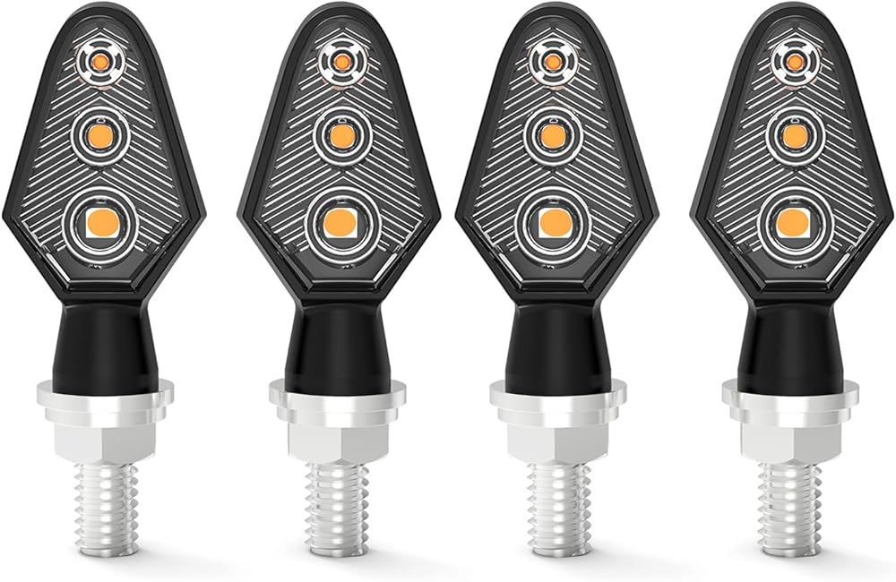 [توافق عالمي ومسمار 8 مم] مصممة لمعظم الدراجات النارية بتيار مستمر 12 فولت، تتميز إشارات الانعطاف LED الصغيرة هذه بمسمار تثبيت M8 (8 مم). متوافق تمامًا مع Harley Davidson Sportster وDyna وSoftail وHonda وYamaha وKawasaki وSuzuki وBMW وTriumph والمزيد. مثالية للطرادات والمروحيات ودراجات الشوارع ومتسابقي المقهى ومركبات الطرق الوعرة.
