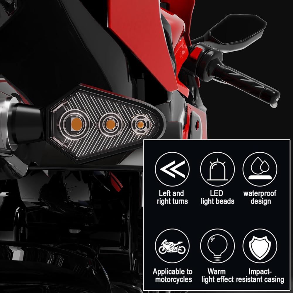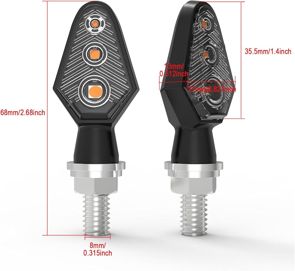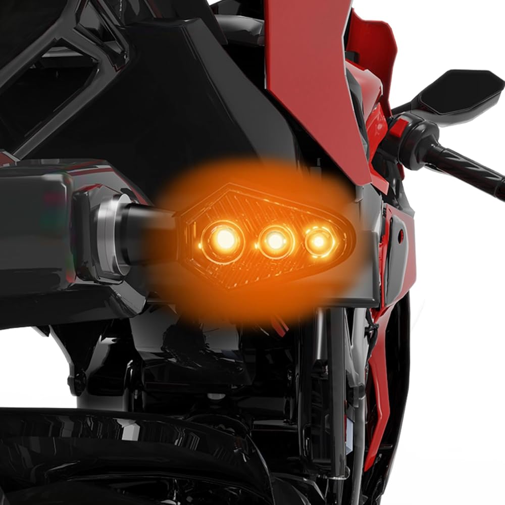 [أداء 3-LED فائق السطوع] مجهزة بـ 3 شرائح SMD LED عالية الكثافة، تنبعث هذه المؤشرات من توهج كهرماني قوي ومركّز. على الرغم من حجمها الصغير، فإنها توفر أقصى قدر من الرؤية حتى في وضح النهار أو الليالي المظلمة، مما يضمن ملاحظة حركة المرور القادمة من مسافة تزيد عن 100 متر.