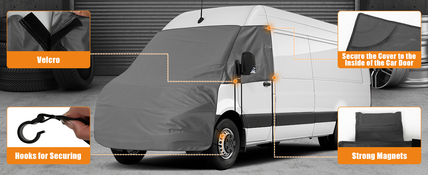 [ملاءمة دقيقة للعداء]: مصمم خصيصًا لسيارة بنز سبرينتر 2019-2026، يضمن هذا الغطاء تغطية كاملة للزجاج الأمامي ومنطقة المحرك، مما يوفر الحماية المثالية والملاءمة الأنيقة.