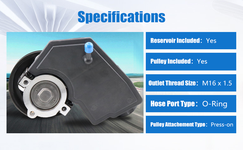 مضخة توجيه كهربائية مع مجموعة البكرة؛ تتضمن بكرة مثبتة مسبقًا ومضغوطة في المصنع للحفاظ على محاذاة الحزام الدقيقة؛ يتميز بمنفذ ملولب عالي الضغط وأنبوب إرجاع منخفض الضغط مصمم لتكامل الأجهزة المباشر.