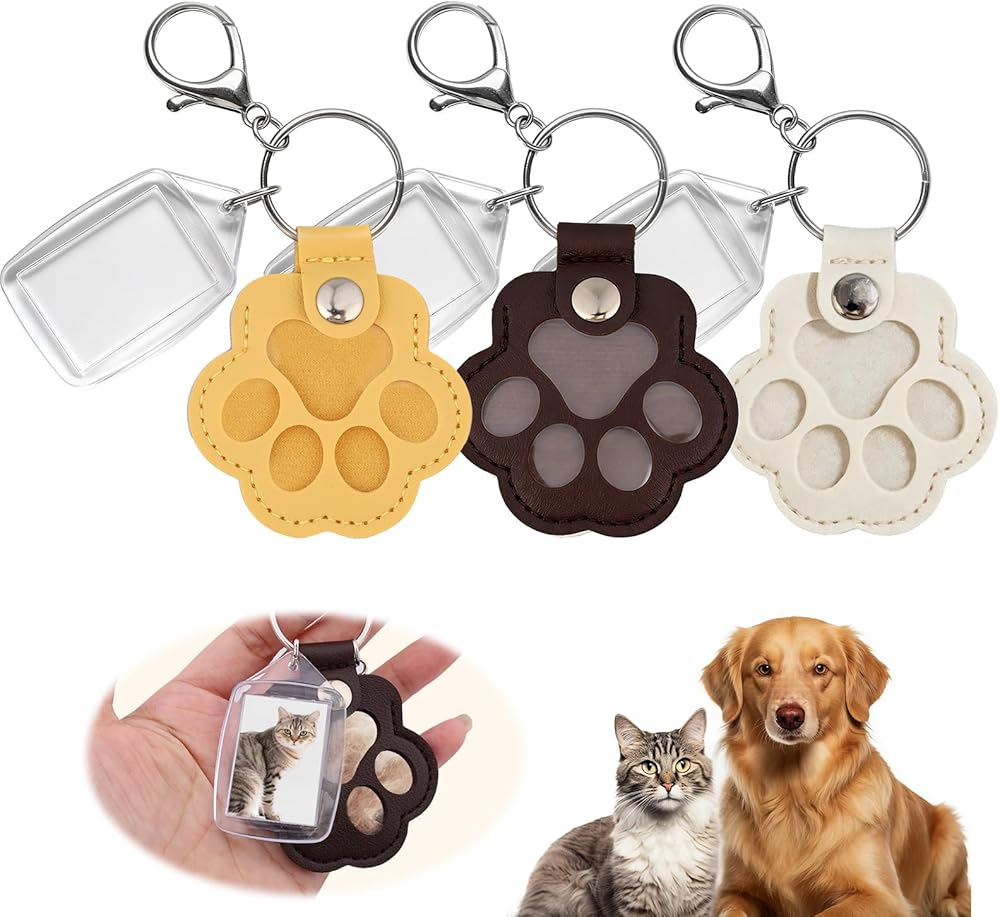 3 قطع من سلسلة مفاتيح مخالب لشعر الكلب مع مجلد صور، حامل مفاتيح لجمع جلد على شكل شعر قط كلب، سلسلة مفاتيح مصنوعة يدويًا كهدية تذكارية للحيوانات الأليفة (إطار 25 مم × 35 مم)