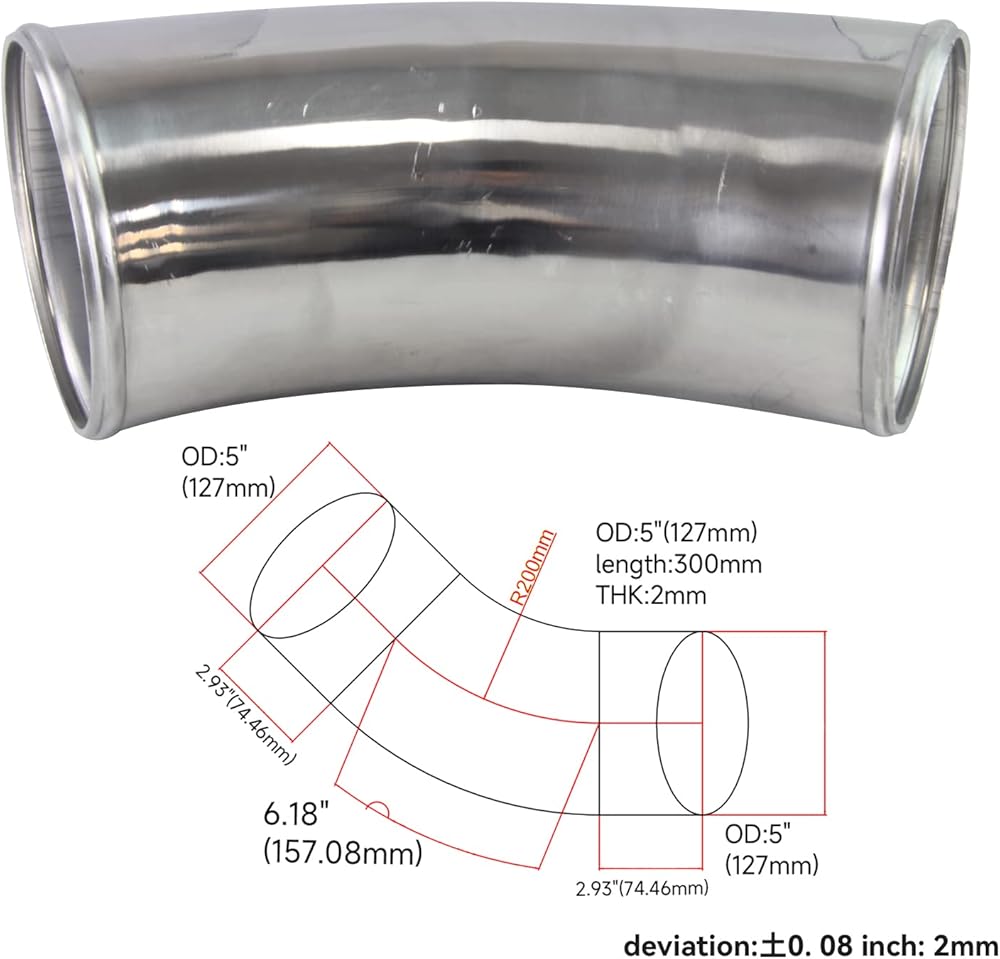 45 درجة 127 مللي متر 5 بوصة من الألومنيوم المبرد مدخل الأنابيب أنبوب خرطوم