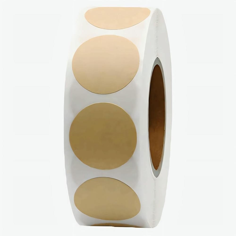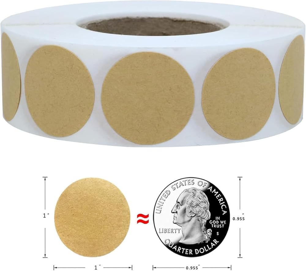 These versatile kraft circle stickers come in a convenient 1000-piece roll, perfect for organizing, labeling, and decorating projects. Each round sticker measures 1 inch in diameter and features a natural brown kraft paper surface with permanent adhesive backing that adheres securely to various surfaces. The blank design provides ample space for writing or customizing with your own information, making them ideal for inventory management, garage sales, color coding systems, and school projects. These durable stickers work excellently as canning jar labels for homemade jams, jellies, and preserves, while also serving practical purposes in offices, warehouses, and classrooms. The premium kraft paper material ensures long-lasting performance, and the roll format makes individual stickers easy to detach and apply. Whether you're sealing envelopes, organizing packages, decorating gift boxes, or creating scrapbook projects, these brown dot stickers offer reliable adhesion and professional appearance for both personal and business applications.