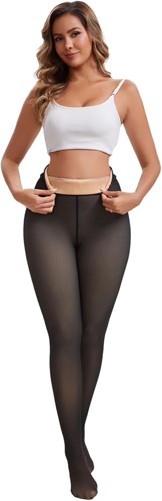 Experience superior comfort and style with these innovative thermal fleece-lined tights. Featuring an invisible one-line design that creates a seamless, flattering silhouette, these tights offer excellent shaping benefits without awkward visible lines. The thoughtfully engineered design includes tummy control, buttocks enhancement, and strategic compression that helps reduce knee wrinkles while providing a snug, comfortable fit from ankle to waist. Perfect for cold weather, these opaque black tights combine warmth with elegance, making them ideal for both everyday wear and special occasions. The fleece lining provides cozy insulation while maintaining a sleek exterior appearance. Available in multiple sizes to suit different body types, these versatile tights can be worn under dresses, skirts, or as stylish leggings. The premium construction ensures durability and shape retention, while the smooth waistband prevents rolling or digging. These tights offer the perfect balance of comfort, functionality, and fashion for the winter season.
