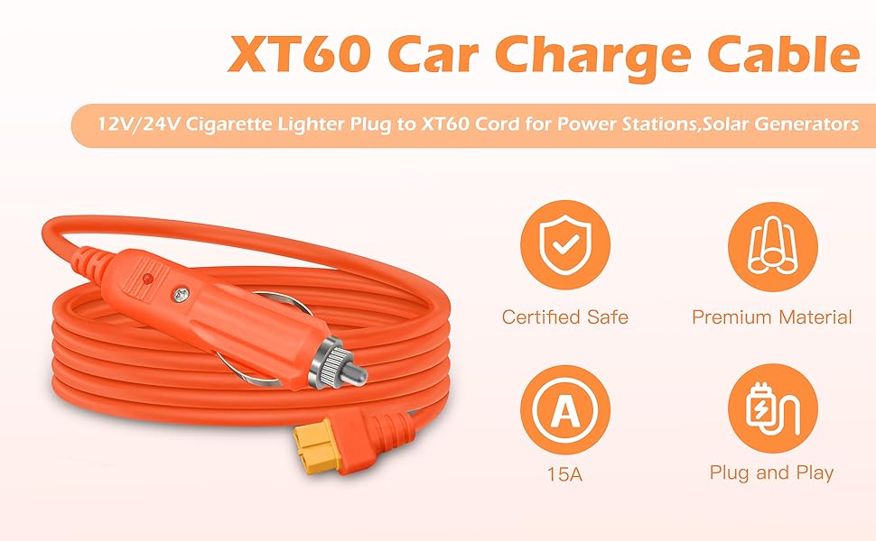 نقل سلس للطاقة من السيارة إلى الجهاز، قم بتوصيل مقبس ولاعة السجائر في سيارتك أو شاحنتك أو RV بسهولة بأي جهاز مزود بمنفذ XT60 باستخدام كابل المحول الخاص بنا. استمتع بنقل طاقة مستقر وفعال أينما ذهبت، وهو مثالي للرحلات البرية واحتياجات الطاقة المتنقلة.