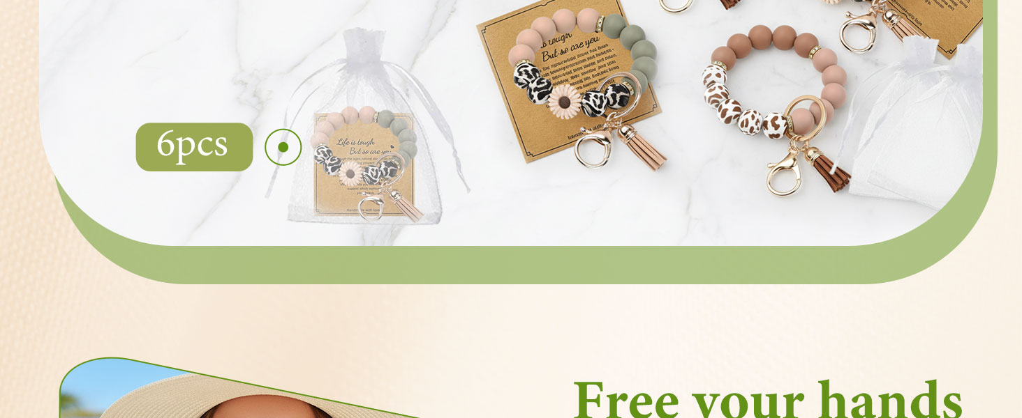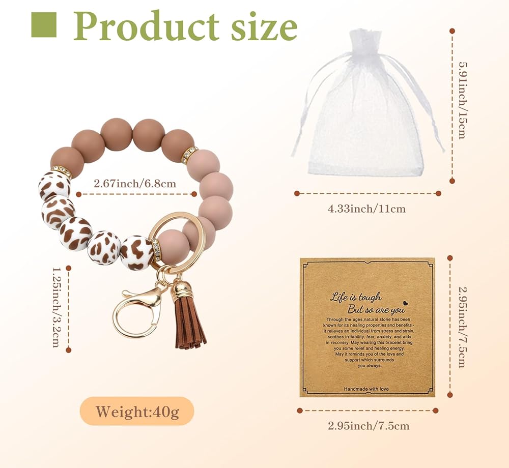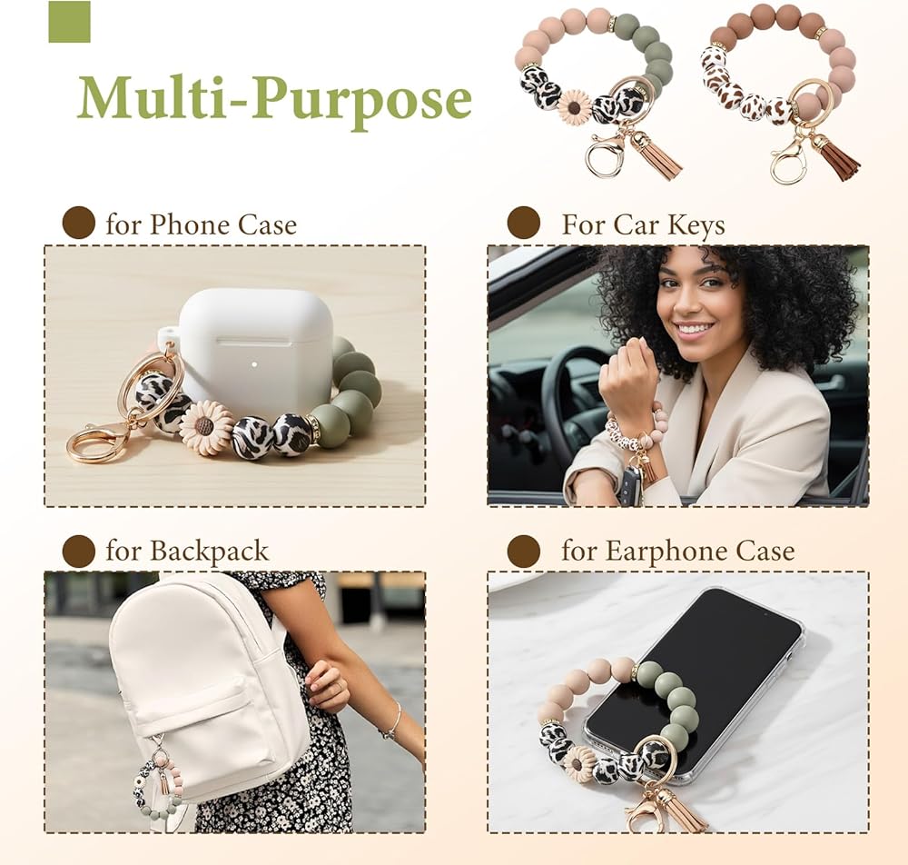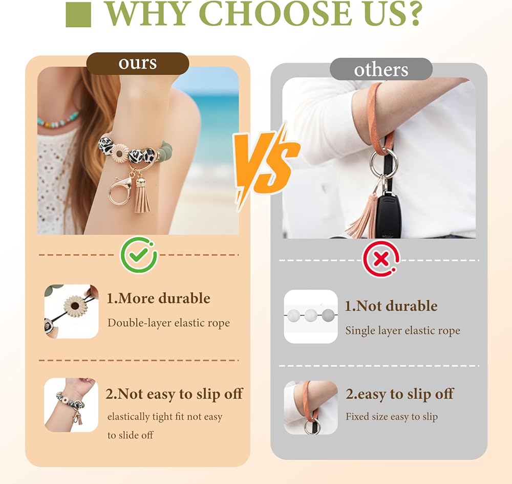 راحة بدون استخدام اليدين في أي مكان: حافظ على يديك حرتين أثناء التسوق أو المشي أو القيام بالمهمات. تتلاءم سوار المعصم ذو حلقة المفاتيح للنساء بشكل مريح حول معصمك حتى تتمكن من حمل قهوتك أو هاتفك أو حقيبتك دون الحاجة إلى مفاتيح العناق. يمكن أيضًا استخدام سلسلة المفاتيح المزينة بالخرز كسوار صغير
