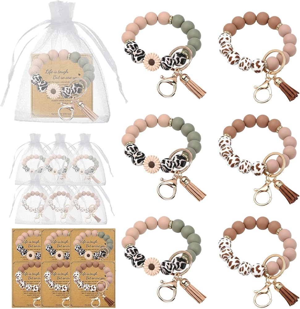 6 مجموعات من سلاسل المفاتيح المصنوعة من السيليكون المطرز بالخرز: تتضمن مجموعة سلسلة المفاتيح المصنوعة من السيليكون المطرز هذه 6 سلاسل مفاتيح أنيقة مطرزة بالخرز، و6 بطاقات ملهمة، و6 حقائب هدايا شفافة من الأورجانزا. تأتي كل سوارة معصم من السيليكون للسيدات مغلفة بشكل جميل وجاهزة لتقديمها كهدية. حقيبة الرباط (3.94 × 5.91 بوصة) تجعل من السهل تخزين أو حمل سلسلة مفاتيح معصم السيليكون اللطيفة في أي مكان